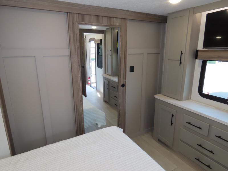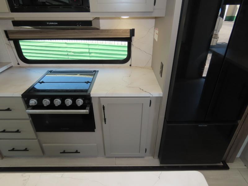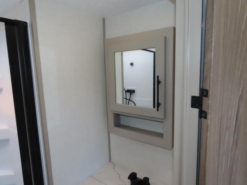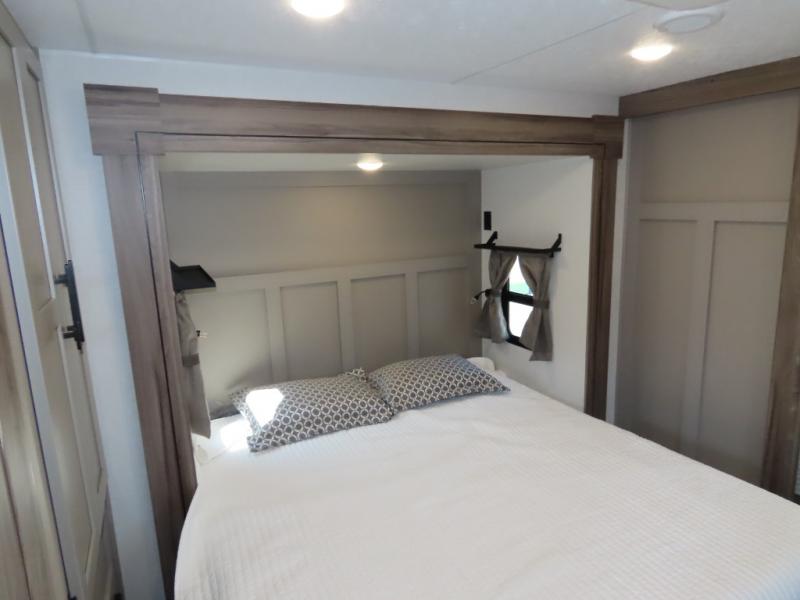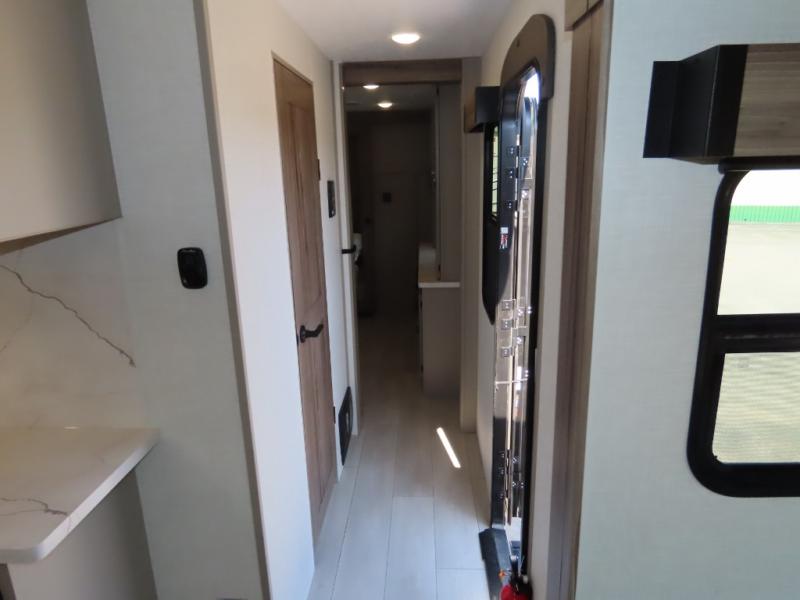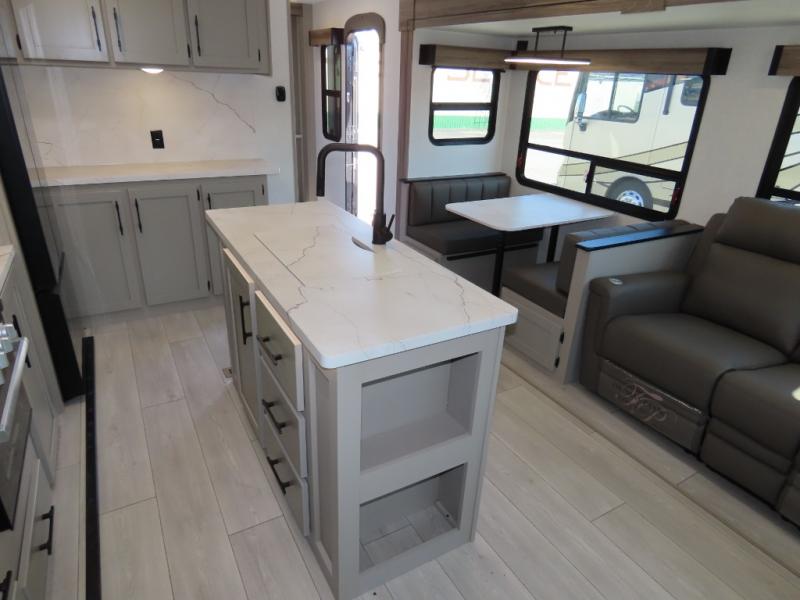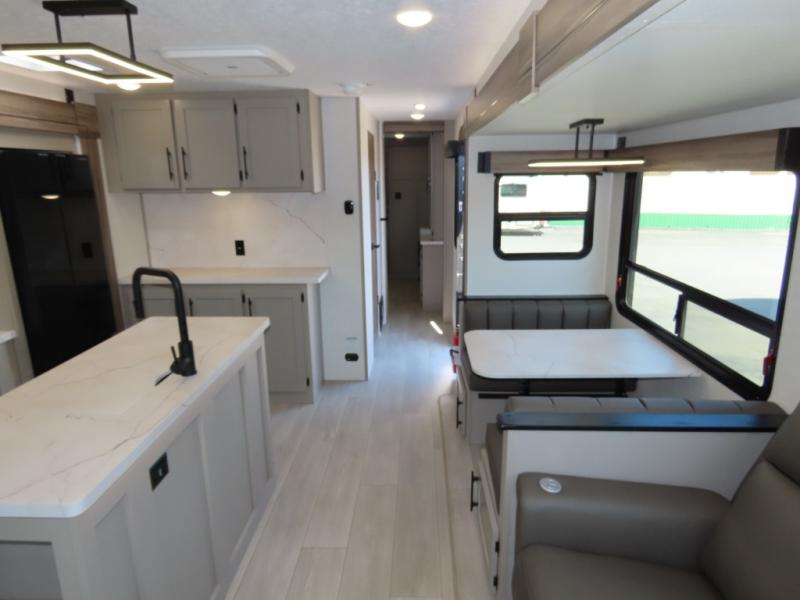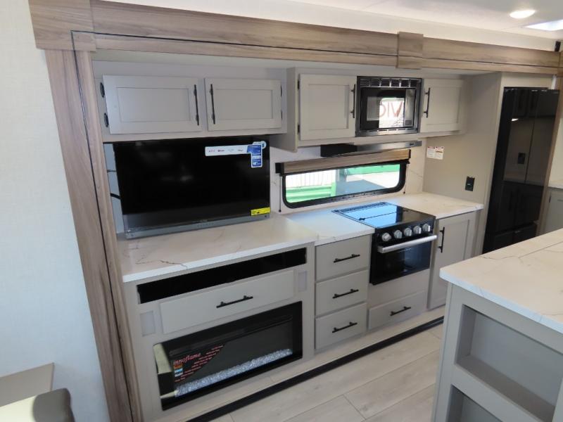 How about a nice afternoon of relaxing on the lake and then rinsing off in the 30" x 36" shower on this Connect travel trailer? After you get clean, you can grab a fresh change of clothes from the front walk-in closet and dresser in the private bedroom. The bedroom also has an area prepped for a washer and dryer and a king bed slide. Out in the main living area, you'll be able to prepare a meal without much effort at all since this trailer has a three-burner range, a microwave, a 10 cu. ft. 12V refrigerator, and a kitchen island for more prep space. You can even have your friends sit on the 70" sofa, theater seating, and booth dinette to chat with you while you finish the meal. You all will also benefit from the two electric awnings with LED lights on the exterior.