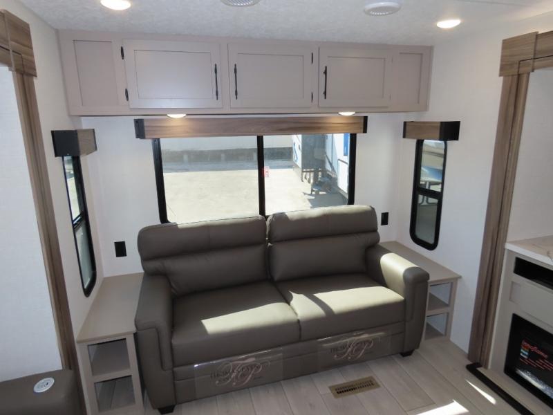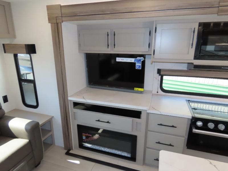 The KZ Connect travel trailer comes with an RV Airflow System which optimizes the airflow for your air conditioner by increasing the airflow by an average of 40%. This improves performance, speeds up cooling times, and reduces noise in your trailer. Some of the other helpful features found on the Connect are the heated, insulated, and enclosed underbelly, the exterior docking station, the fiberglass front cap with front windshield, the 82" interior ceiling height, and the protective front diamond plate. There are some useful technological features, like the two LED motion-sensor lights, the HDMI and USB charge, and the multi-media entertainment system with a DVD player. The KZ Engage is powered by OneControl, and it monitors battery levels and controls slide rooms, the leveling system, the awning, inside/outside lighting, and the TPMS prep.