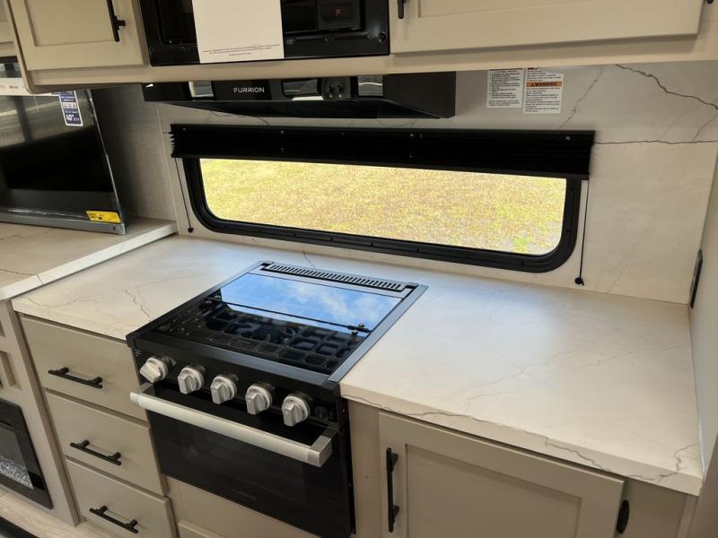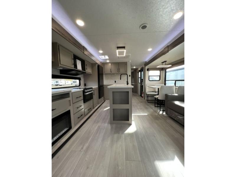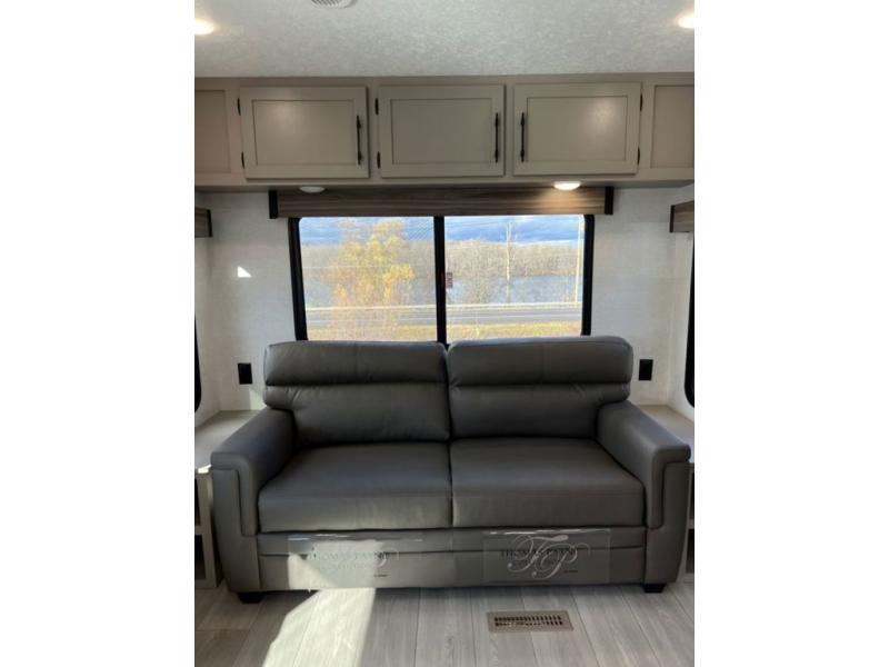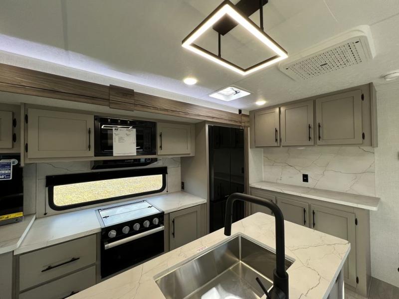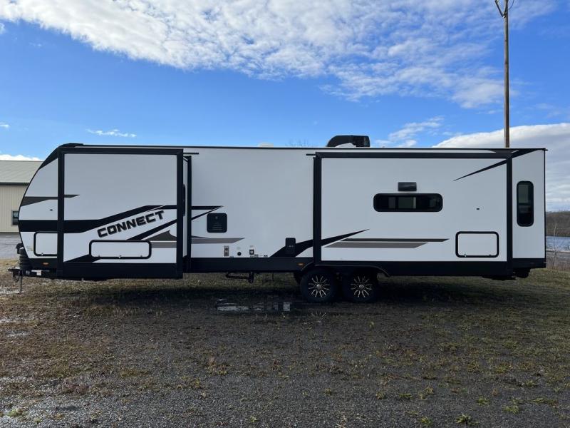 How about a nice afternoon of relaxing on the lake and then rinsing off in the 30" x 36" shower on this Connect travel trailer? After you get clean, you can grab a fresh change of clothes from the front walk-in closet and dresser in the private bedroom. The bedroom also has an area prepped for a washer and dryer and a king bed slide. Out in the main living area, you'll be able to prepare a meal without much effort at all since this trailer has a three-burner range, a microwave, a 10 cu. ft. 12V refrigerator, and a kitchen island for more prep space. You can even have your friends sit on the 70" sofa, theater seating, and booth dinette to chat with you while you finish the meal. You all will also benefit from the two electric awnings with LED lights on the exterior.