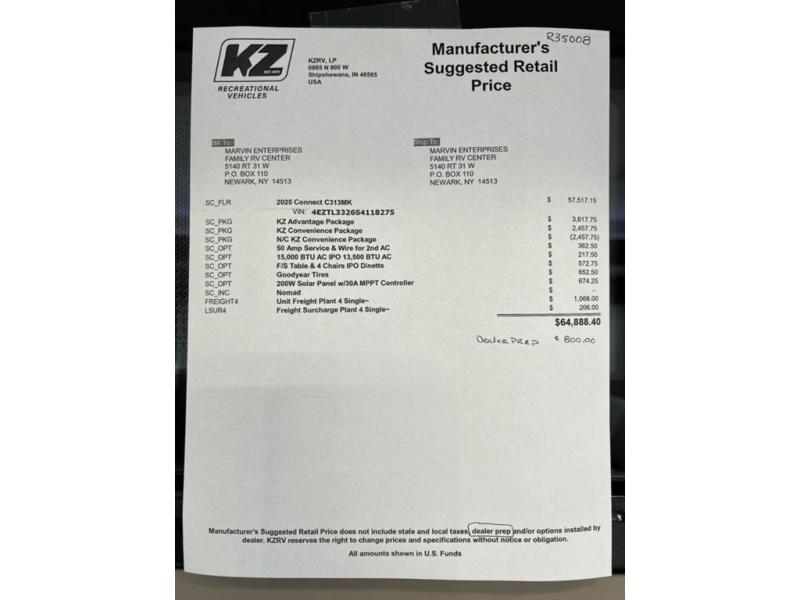New 2025 KZ Connect C313MK Travel Trailer