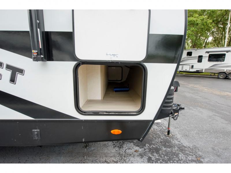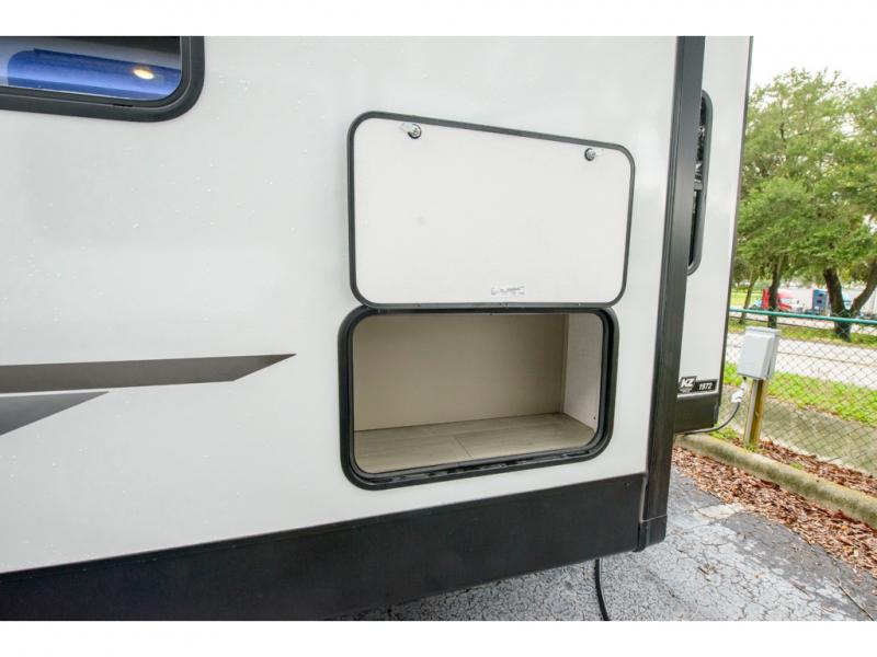 The KZ Connect travel trailer comes with an RV Airflow System which optimizes the airflow for your air conditioner by increasing the airflow by an average of 40%. This improves performance, speeds up cooling times, and reduces noise in your trailer. Some of the other helpful features found on the Connect are the heated, insulated, and enclosed underbelly, the exterior docking station, the fiberglass front cap with front windshield, the 82" interior ceiling height, and the protective front diamond plate. There are some useful technological features, like the two LED motion-sensor lights, the HDMI and USB charge, and the multi-media entertainment system with a DVD player. The KZ Engage is powered by OneControl, and it monitors battery levels and controls slide rooms, the leveling system, the awning, inside/outside lighting, and the TPMS prep.