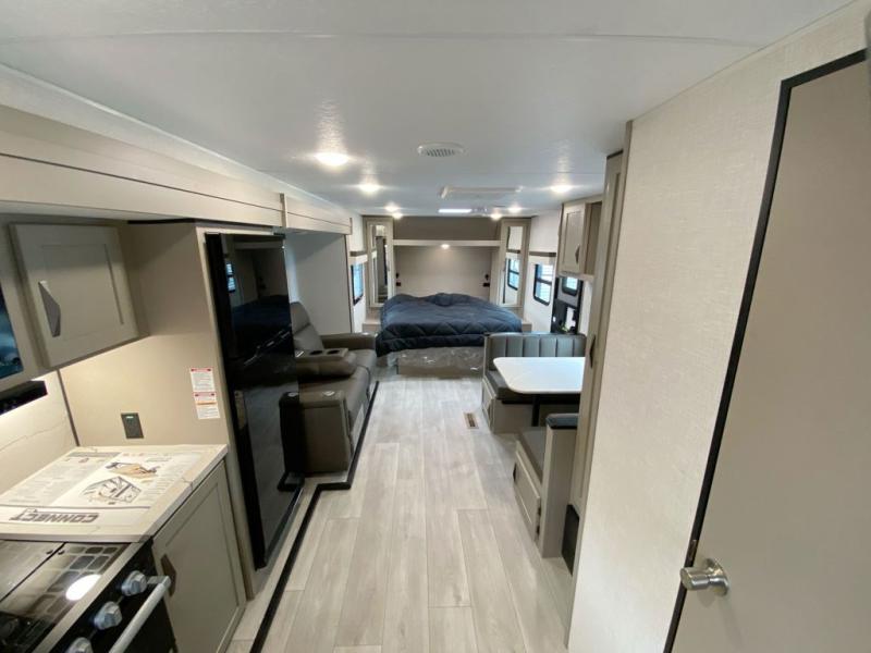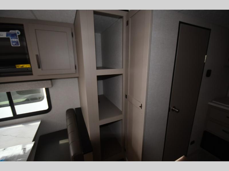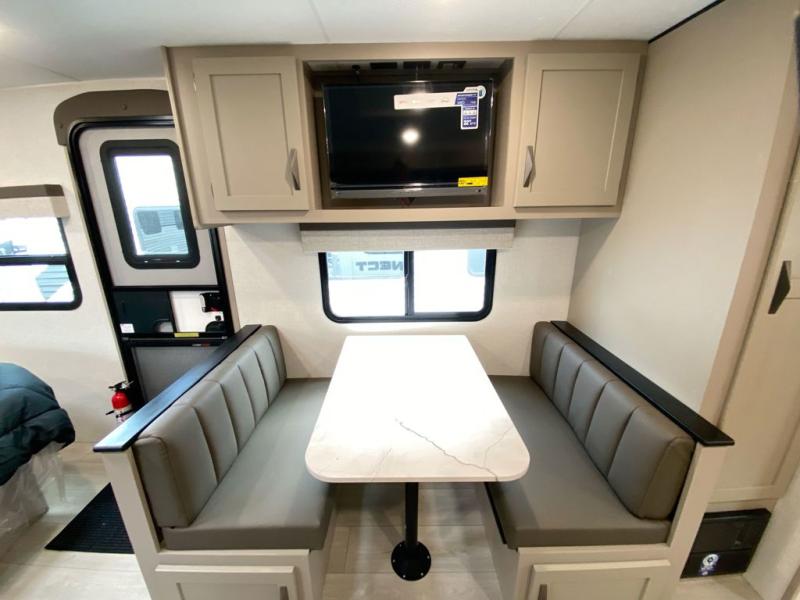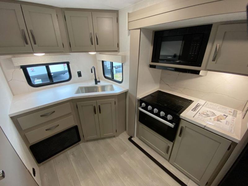 The 2025 KZ Connect SE C211MKSE is designed for easy towing while still offering a roomy interior layout. Its smart floorplan includes a comfortable rear living area, large panoramic windows, and a slide-out dinette that expands your living space for relaxing, dining, or entertaining.