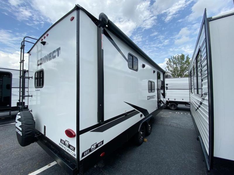 Each Connect SE travel trailer by KZ includes an NXG frame, which is a high quality, highly engineered frame that provides a lightweight yet strong foundation for your RV. The Climate package provides added insulation to extend your camping season year-round with a fully enclosed, insulated and heated underbelly to protect the tanks and pipes. Some top features include the 17-inch range with illuminated control knobs, the seamless countertops with a deep undermount stainless steel kitchen sink including a sink cover for added countertop space, and a black high-rise faucet. You will also enjoy the KZ Engage that is powered by OneControl to monitor and control the battery levels, the slide(s), the leveling system, the awning(s), plus the inside and outside lighting. Choose your favorite today!
