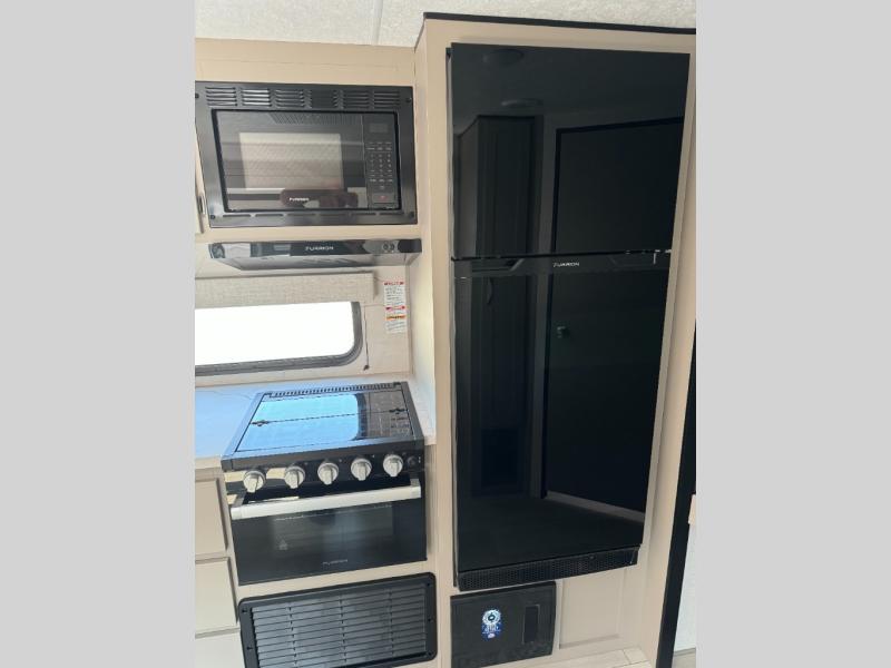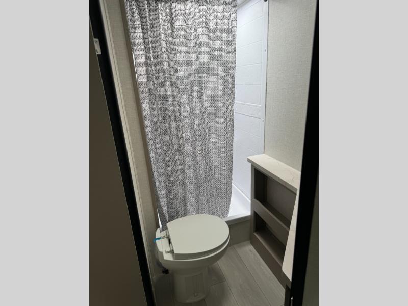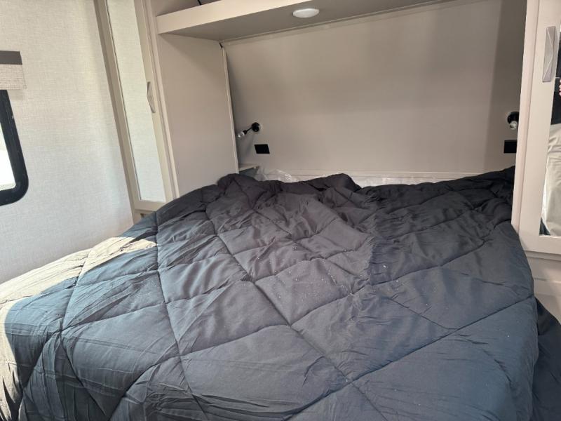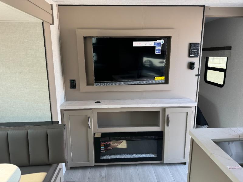 Get ready for outdoor fun at your favorite campground or RV park, and relaxation both outside and inside this trailer! The 18' power awning provides protection from the elements and the LED light strip allows you to stay up late, the outside kitchen and griddle provide amenities to make meals in the great outdoors, plus the trunk door and the pass-through storage give you access to stow items away. When you are ready to call it a night, there is a queen bed in the front private bedroom, double-size bunks next to the full bathroom, and a U-shaped dinette slide offers extra sleeping space. The next morning, the cook can make meals using the L-shaped kitchen with full amenities, or head back outdoors to use the outside amenities.