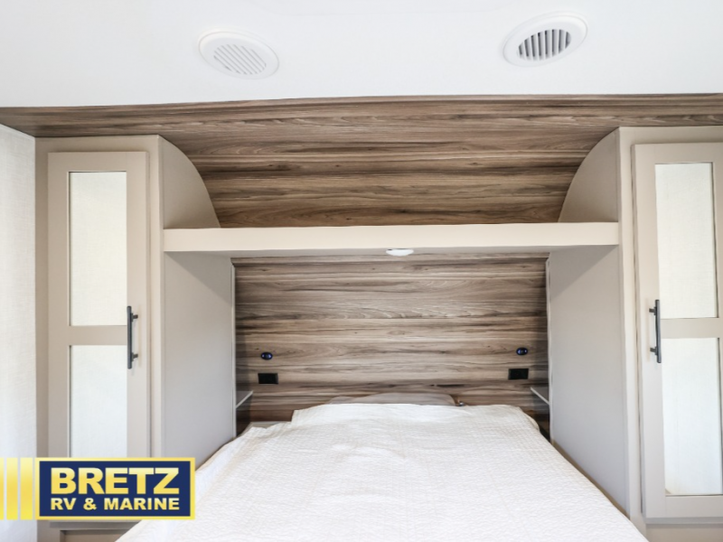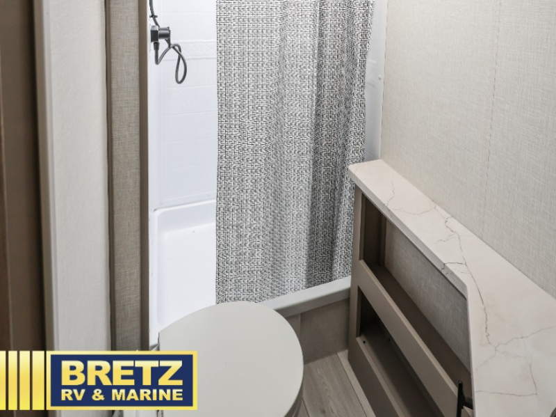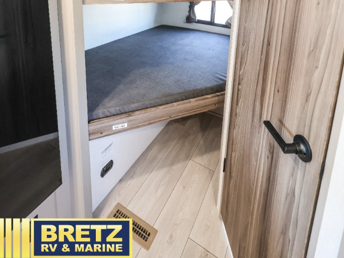 Get ready for outdoor fun at your favorite campground or RV park, and relaxation both outside and inside this trailer! The 18' power awning provides protection from the elements and the LED light strip allows you to stay up late, the outside kitchen and griddle provide amenities to make meals in the great outdoors, plus the trunk door and the pass-through storage give you access to stow items away. When you are ready to call it a night, there is a queen bed in the front private bedroom, double-size bunks next to the full bathroom, and a U-shaped dinette slide offers extra sleeping space. The next morning, the cook can make meals using the L-shaped kitchen with full amenities, or head back outdoors to use the outside amenities.