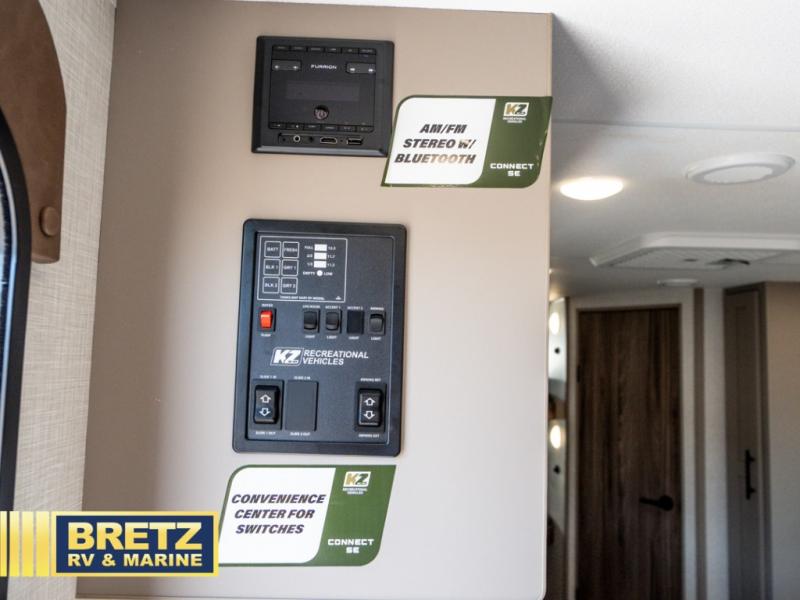 Each Connect SE travel trailer by KZ includes an NXG frame, which is a high quality, highly engineered frame that provides a lightweight yet strong foundation for your RV. The Climate package provides added insulation to extend your camping season year-round with a fully enclosed, insulated and heated underbelly to protect the tanks and pipes. Some top features include the 17-inch range with illuminated control knobs, the seamless countertops with a deep undermount stainless steel kitchen sink including a sink cover for added countertop space, and a black high-rise faucet. You will also enjoy the KZ Engage that is powered by OneControl to monitor and control the battery levels, the slide(s), the leveling system, the awning(s), plus the inside and outside lighting. Choose your favorite today!