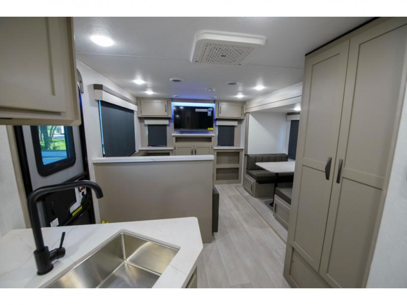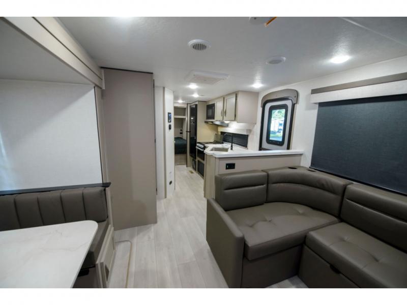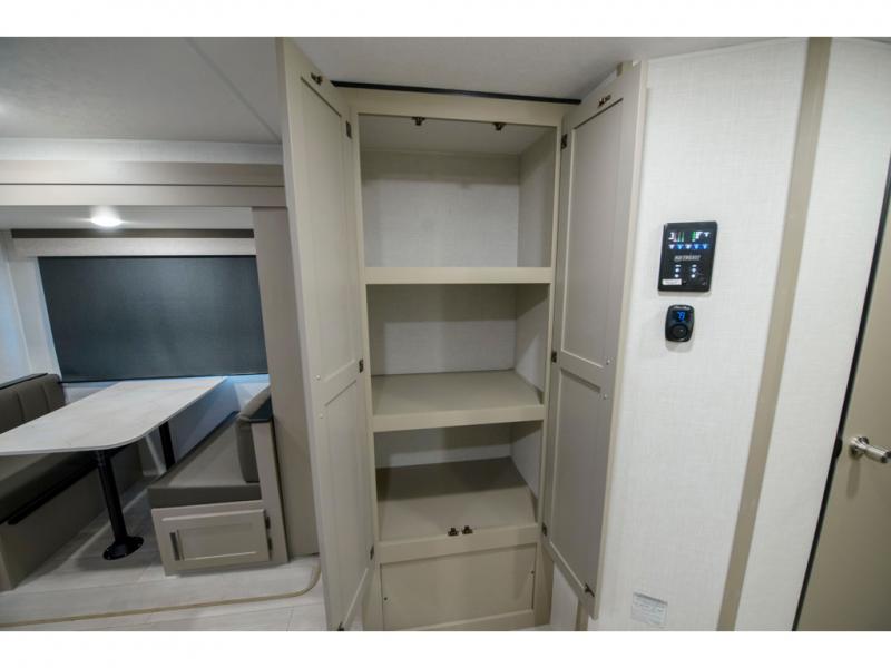 This model resembles C221RESE, but you'll enjoy a standard 39" fireplace on this model, a larger 20' awning, and a longer exterior length for more space! You'll get a good night's rest on the front queen bed with wardrobes on either side and a TV mount area to watch movies in bed when you add a TV. The rear has an L-shaped sofa with pull out ottomans for extra comfort, plus a 39" TV for movie nights. There is also a booth dinette slide to enjoy your meals at, play card games, and even transform into an extra sleeping space. Stay squeaky clean with the 30" x 36" shower in the full bathroom!