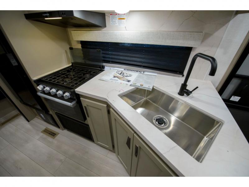 Each Connect SE travel trailer by KZ includes an NXG frame, which is a high quality, highly engineered frame that provides a lightweight yet strong foundation for your RV. The Climate package provides added insulation to extend your camping season year-round with a fully enclosed, insulated and heated underbelly to protect the tanks and pipes. Some top features include the 17-inch range with illuminated control knobs, the seamless countertops with a deep undermount stainless steel kitchen sink including a sink cover for added countertop space, and a high-rise faucet. You will also enjoy the KZ Engage that is powered by OneControl to monitor and control the battery levels, the slide(s), the leveling system, the awning(s), plus the inside and outside lighting. Choose your favorite today!