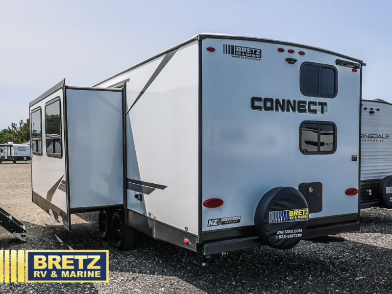 Each Connect SE travel trailer by KZ includes an NXG frame, which is a high quality, highly engineered frame that provides a lightweight yet strong foundation for your RV. The Climate package provides added insulation to extend your camping season year-round with a fully enclosed, insulated and heated underbelly to protect the tanks and pipes. Some top features include the 17-inch range with illuminated control knobs, the seamless countertops with a deep undermount stainless steel kitchen sink including a sink cover for added countertop space, and a black high-rise faucet. You will also enjoy the KZ Engage that is powered by OneControl to monitor and control the battery levels, the slide(s), the leveling system, the awning(s), plus the inside and outside lighting. Choose your favorite today!