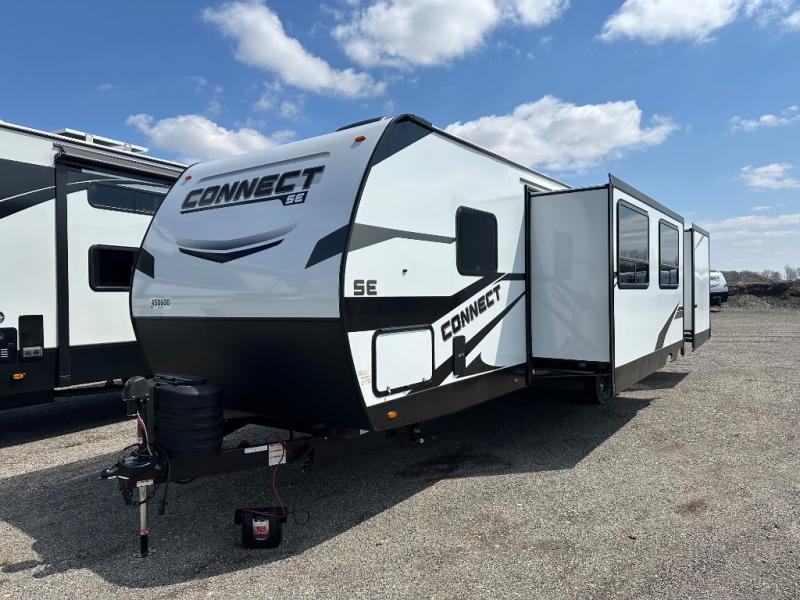 Each Connect SE travel trailer by KZ includes an NXG frame, which is a high quality, highly engineered frame that provides a lightweight yet strong foundation for your RV. The Climate package provides added insulation to extend your camping season year-round with a fully enclosed, insulated and heated underbelly to protect the tanks and pipes. Some top features include the 17-inch range with illuminated control knobs, the seamless countertops with a deep undermount stainless steel kitchen sink including a sink cover for added countertop space, and a black high-rise faucet. You will also enjoy the KZ Engage that is powered by OneControl to monitor and control the battery levels, the slide(s), the leveling system, the awning(s), plus the inside and outside lighting. Choose your favorite today!