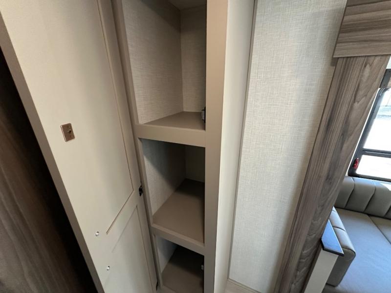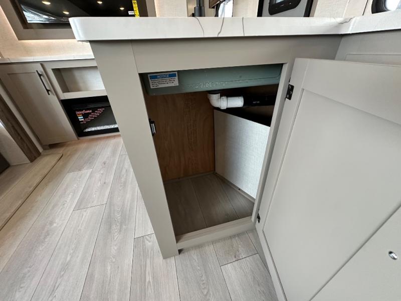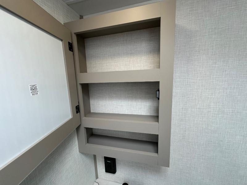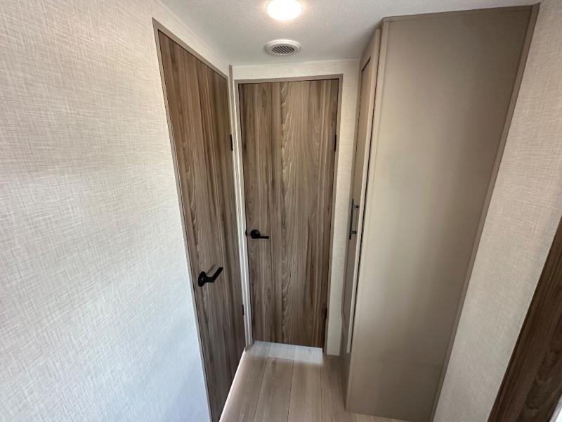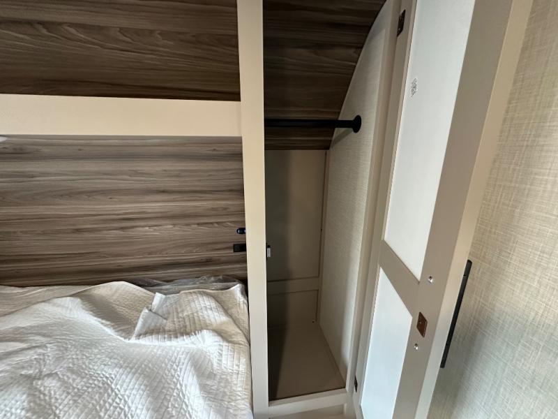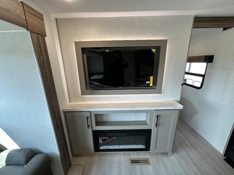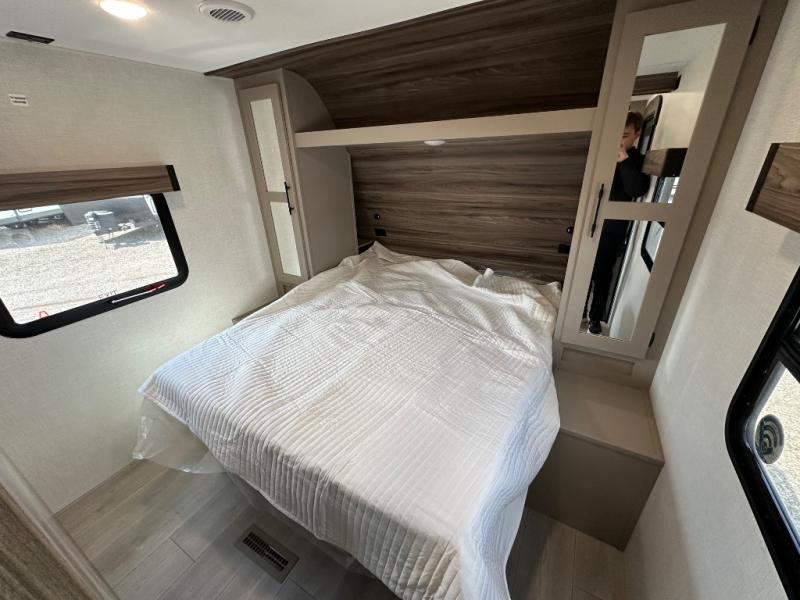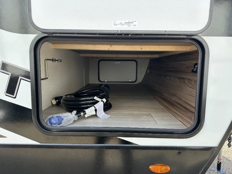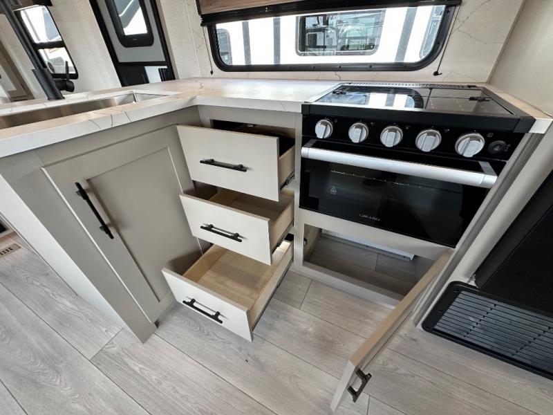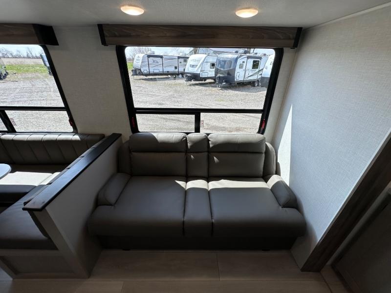 Your kids or your friends will love having their own privacy in the rear bunkhouse which offers two bunks and a dinette to play games or dine at, plus there is a closet for their storage. The full bathroom is conveniently located and includes the second exterior entry for quick and easy access to the fun happening outside. You will have your own private bedroom on the opposite side of the trailer, and it includes a walk-around queen bed, dual wardrobes and a sliding entry door. The main living and kitchen area is spacious with a large slide out, and you can relax on the 64" sofa or the 80" U-shaped dinette while the cook makes meals with full amenities including a 10 cu. ft. 12V refrigerator and a pantry for food storage.