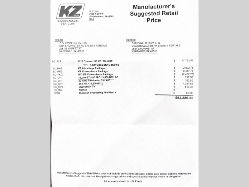 KZ Connect SE travel trailer C312BHKSE highlights: