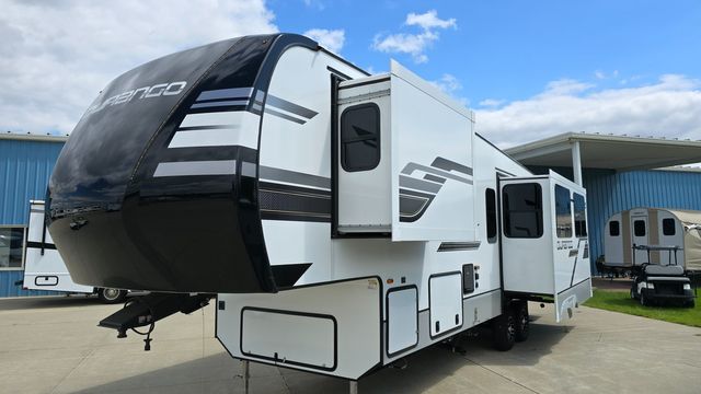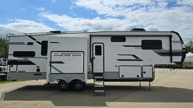 Enjoy full time living, an affordable price, and a wide body construction for more living space with every one of these KZ Durango light high-profile fifth wheels! These luxury units can be used all year round with the all-weather insulation package, the 3" x 14" foam-core in-floor straight-line heating system with a 35,000 BTU furnace, and the 15,000 BTU ducted roof A/C which optimizes the airflow by an average of 40% for better performance, cooling time, and reduction of noise. A few other construction features you will appreciate include a one piece, seamless walk-on Tufflex roofing material, Pex® in-floor heated waterlines, a Lamilux® gelcoat fiberglass exterior, and Dexter® axles with self adjusting brakes and height adjusting hangers. Inside, blancher cherry cabinetry, a king size bed, and smart TVs will have you feeling like you never left home!