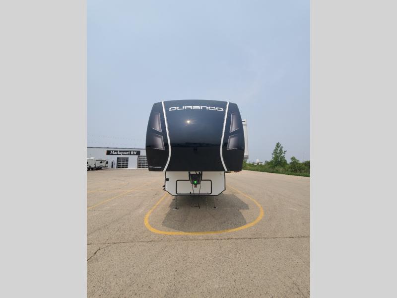 Enjoy full time living, an affordable price, and a wide body construction for more living space with every one of these KZ Durango light high-profile fifth wheels! These luxury units can be used all year round with the all-weather insulation package, the 3" x 14" foam-core in-floor straight-line heating system with a 35,000 BTU furnace, and the 15,000 BTU ducted roof A/C which optimizes the airflow by an average of 40% for better performance, cooling time, and reduction of noise. A few other construction features you will appreciate include a one piece, seamless walk-on Tufflex roofing material, Pex® in-floor heated waterlines, a Lamilux® gelcoat fiberglass exterior, and Dexter® axles with self adjusting brakes and height adjusting hangers. Inside, blancher cherry cabinetry, a king size bed, and smart TVs will have you feeling like you never left home!