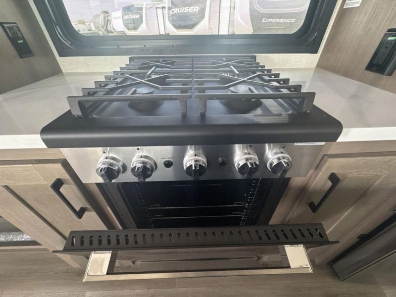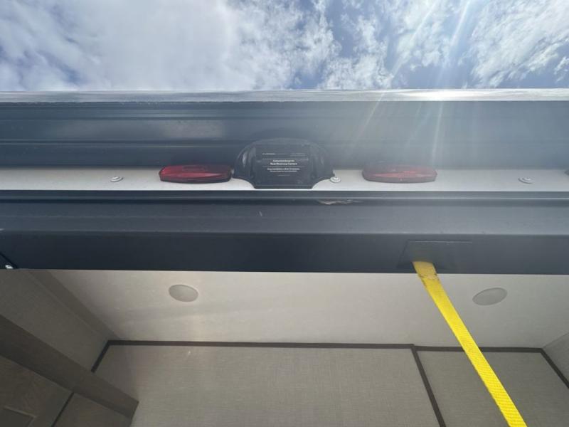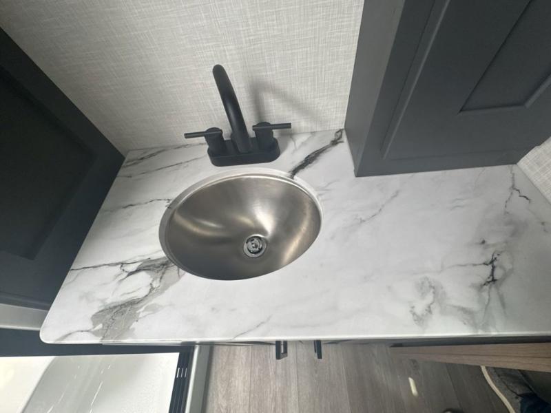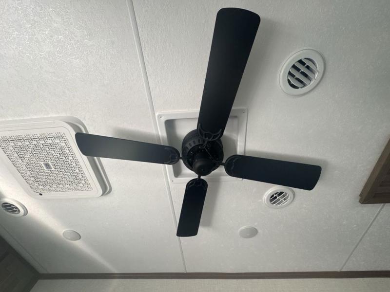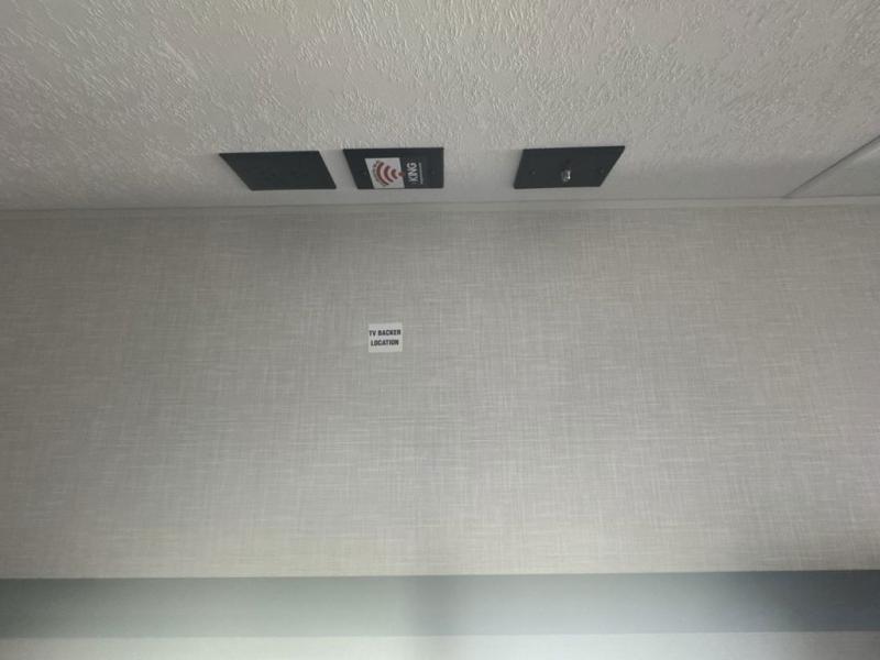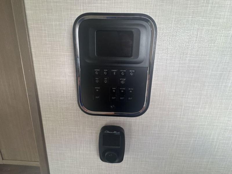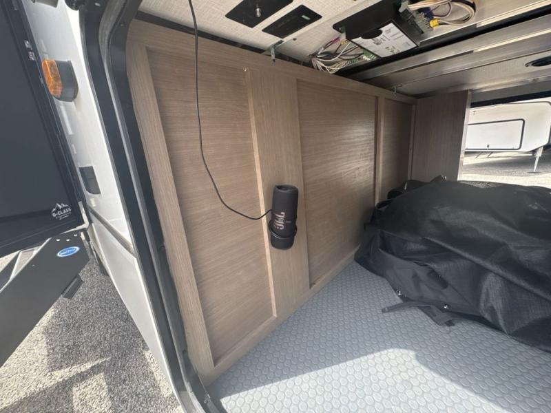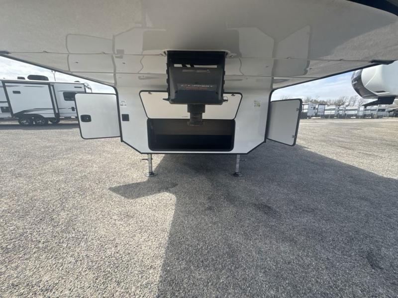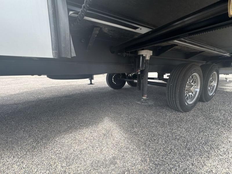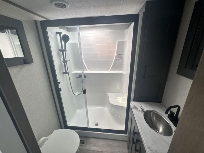 Experience the pinnacle of luxury fifth-wheel living! The front private bedroom has a king bed slide which can be switched for an optional queen instead, a dresser, and a front wardrobe with washer and dryer prep. Start feeling clean and fresh each morning after showering in the 48" x 30" residential shower with a seat in the full bathroom. The kitchen has an island that will make cooking time easy and allow you to mingle with the chef whipping up some scrambled eggs on the four-burner range. The hutch can store your dishes, the pantry can store your canned goods, and the 18 cu. ft. refrigerator will keep your perishables fresh. To experience a quiet time and relaxing time read a book on the rear hide-a-bed sofa or relax in the theater seating with USB charging. And the entertainment center with a fireplace and 50" smart LED TV will keep you entertained! Finally, this unit offers a flexible storage space ideal for keeping all organized and neat, and a patio deck, perfect for spending time outside connecting with nature.
