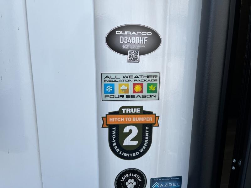 The New 2025 KZ Durango D348BHF brings big-rig comfort, thoughtful family-friendly design, and outdoor living versatility to your travel adventures. With its spacious layout and premium features, this fifth wheel offers the room and amenities you want for memorable trips, extended stays, or multi-family camping.
