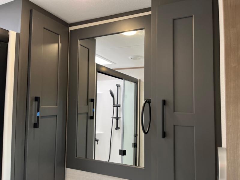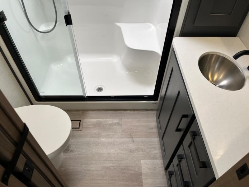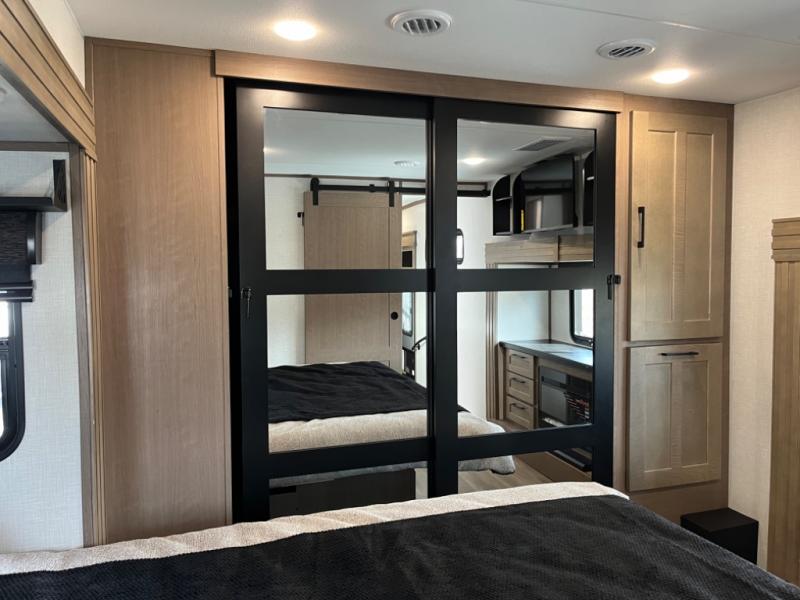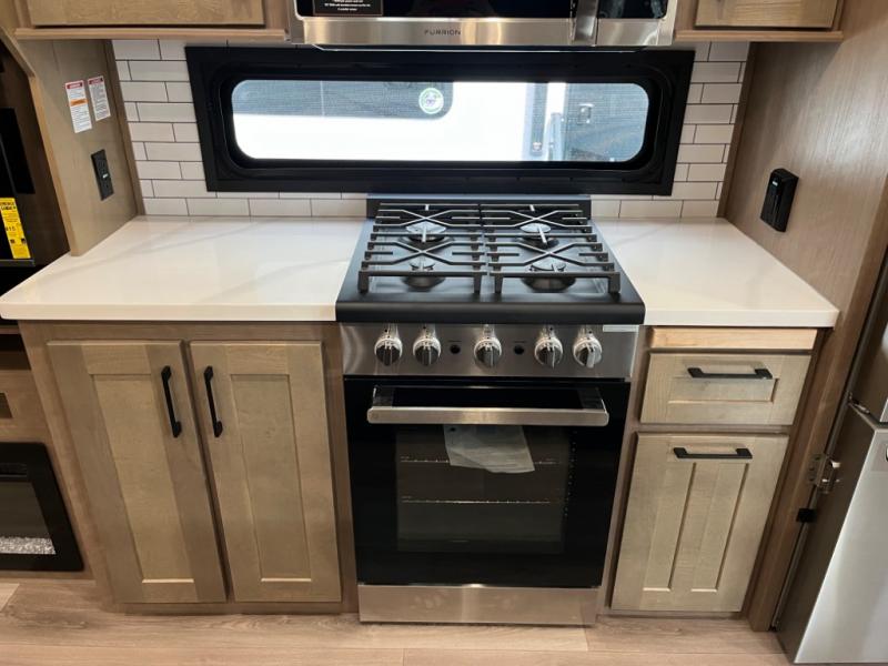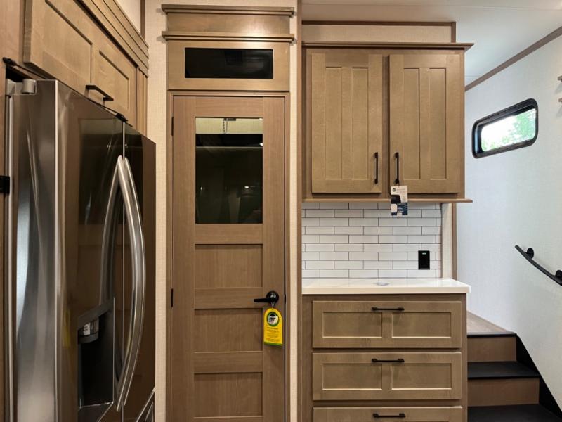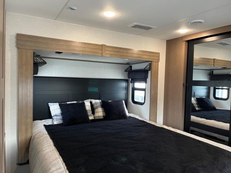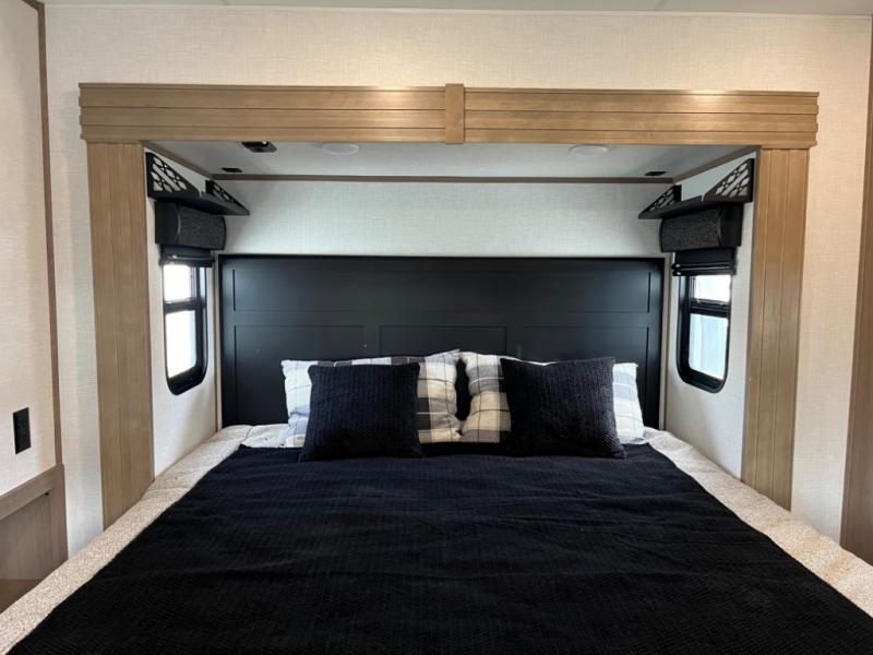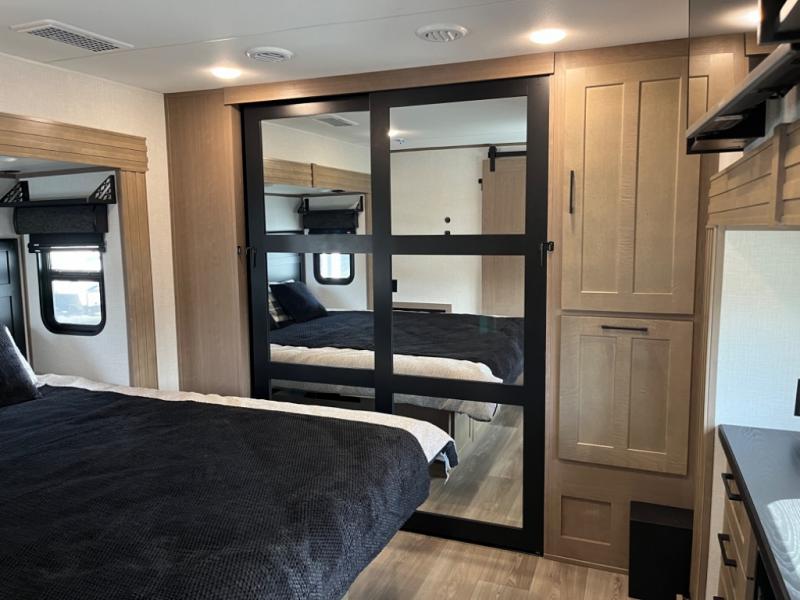 With any KZ Durango Gold full-time luxury fifth wheel, you will enjoy the new Blancher Cherry cabinetry, stainless steel appliances such as a 30" convection microwave and 24" oven with a four burner range, plus a stainless dishwasher. Other top features include an electric tilt bed with Serta Comfort foam king mattress, two 15K A/C units, plus theater seating with powered recline, heat and massage features. You will also appreciate a handy central vacuum system with attachments that stores out of sight. Each Durango Gold is constructed with six-sided aluminum framing, and has a heated, insulated and an enclosed underbelly. It is also constructed with Tufflex roofing material which is flexible, puncture resistant, and reflective. The now standard "Off The Grid" solar package includes two 200W solar panels, a 30A MPPT solar charge controller, and a 2,000W True Sine Wave inverter for off-grid capabilities. If you're wanting to go completely off-grid, you might want to choose the optional Boondocker Solar System with even more features that won't require you to be close to electric hookups!