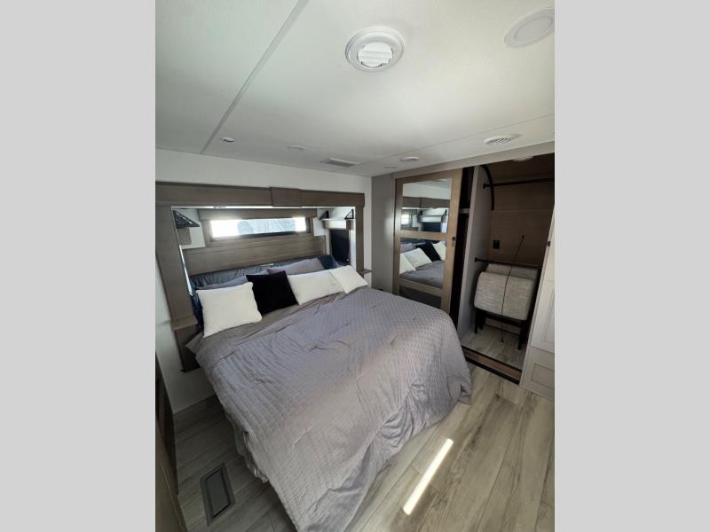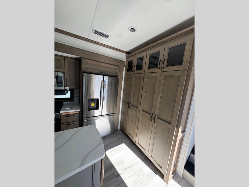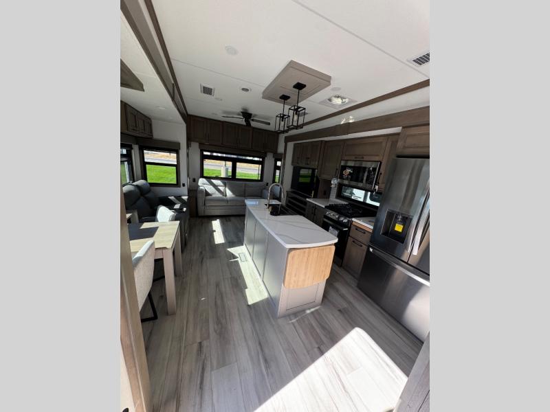 With any KZ Durango Gold full-time luxury fifth wheel, you will enjoy the new Blancher Cherry cabinetry, stainless steel appliances such as a 30" convection microwave and 24" oven with a four burner range, plus a stainless dishwasher. Other top features include an electric tilt bed with Serta Comfort foam king mattress, two 15K A/C units, plus theater seating with powered recline, heat and massage features. You will also appreciate a handy central vacuum system with attachments that stores out of sight. Each Durango Gold is constructed with six-sided aluminum framing, and has a heated, insulated and an enclosed underbelly. It is also constructed with Tufflex roofing material which is flexible, puncture resistant, and reflective. The now standard "Off The Grid" solar package includes two 200W solar panels, a 30A MPPT solar charge controller, and a 2,000W True Sine Wave inverter for off-grid capabilities. If you're wanting to go completely off-grid, you might want to choose the optional Boondocker Solar System with even more features that won't require you to be close to electric hookups!