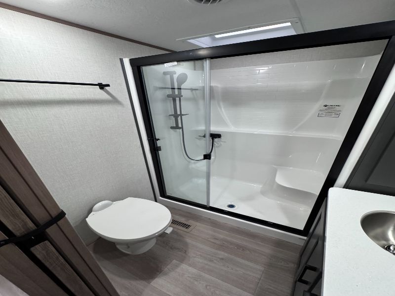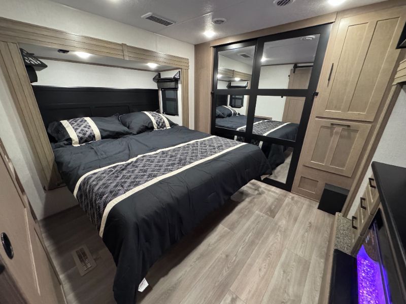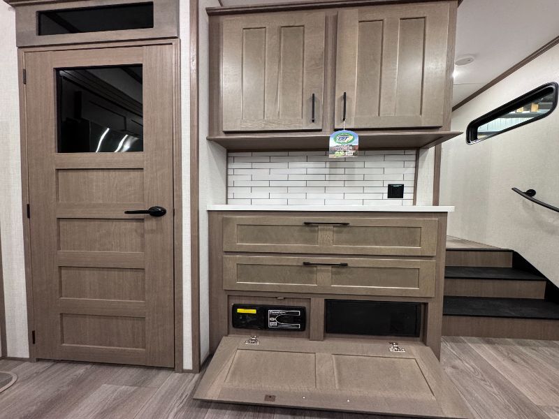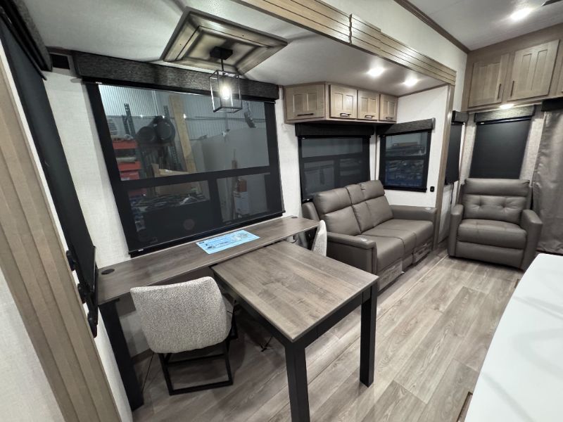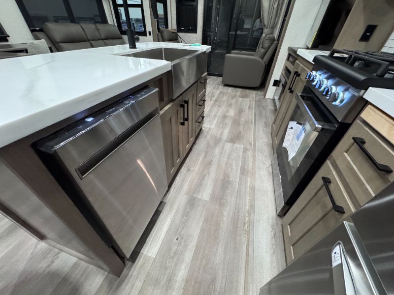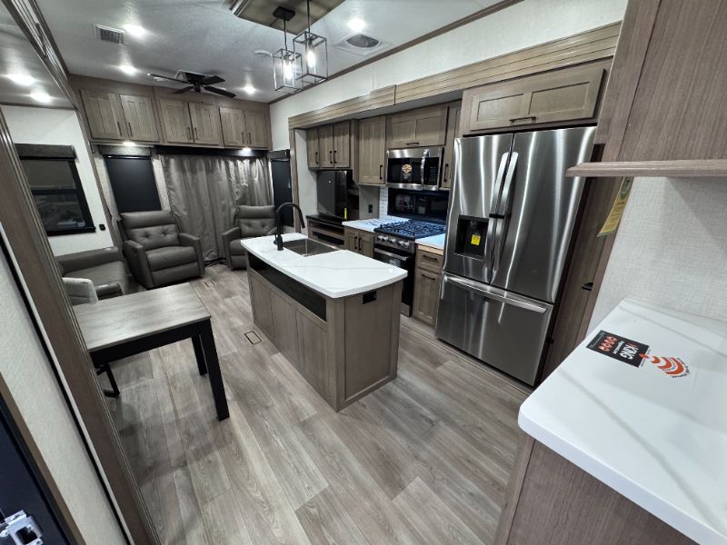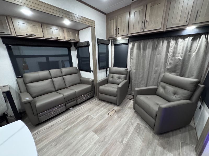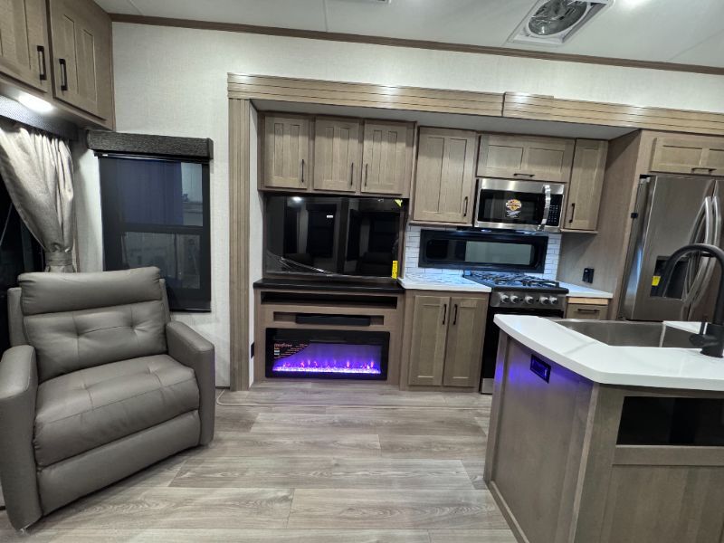 With any KZ Durango Gold full-time luxury fifth wheel, you will enjoy the new Blancher Cherry cabinetry, stainless steel appliances such as a 30" convection microwave and 24" oven with a four burner range, plus a stainless dishwasher. Other top features include an electric tilt bed with Serta Comfort foam king mattress, two 15K A/C units, plus theater seating with powered recline, heat and massage features. You will also appreciate a handy central vacuum system with attachments that stores out of sight. Each Durango Gold is constructed with six-sided aluminum framing, and has a heated, insulated and an enclosed underbelly. It is also constructed with Tufflex roofing material which is flexible, puncture resistant, and reflective. The now standard "Off The Grid" solar package includes two 200W solar panels, a 30A MPPT solar charge controller, and a 2,000W True Sine Wave inverter for off-grid capabilities. If you're wanting to go completely off-grid, you might want to choose the optional Boondocker Solar System with even more features that won't require you to be close to electric hookups!
