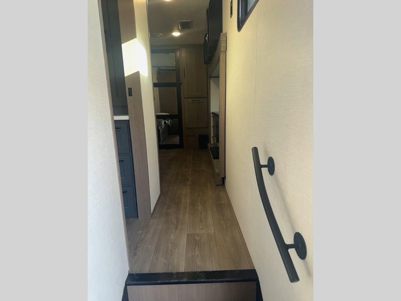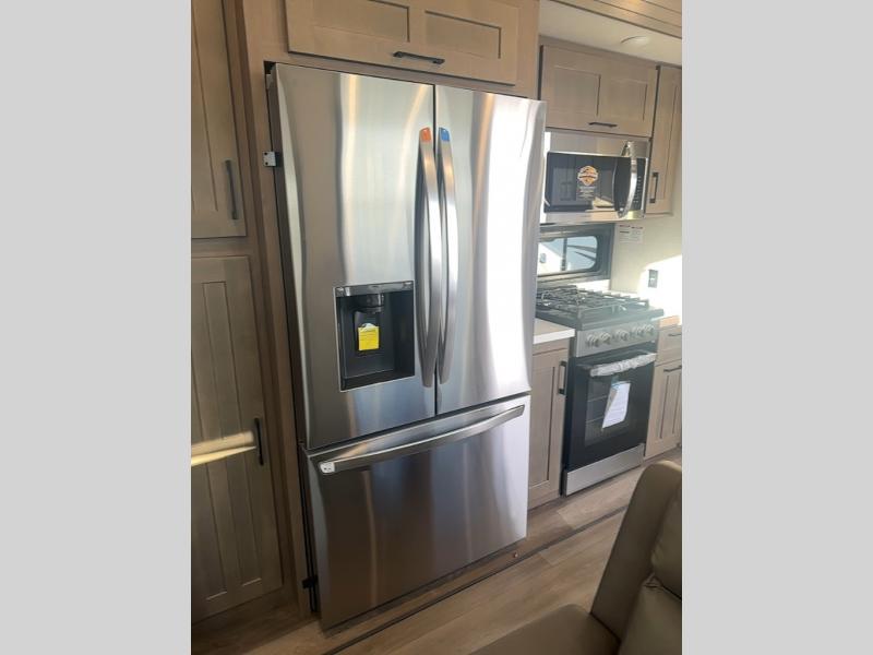 With any KZ Durango Gold full-time luxury fifth wheel, you will enjoy the new Blancher Cherry cabinetry, stainless steel appliances such as a 30" convection microwave and 24" oven with a four burner range, plus a stainless dishwasher. Other top features include an electric tilt bed with Serta Comfort foam king mattress, two 15K A/C units, plus theater seating with powered recline, heat and massage features. You will also appreciate a handy central vacuum system with attachments that stores out of sight. Each Durango Gold is constructed with six-sided aluminum framing, and has a heated, insulated and an enclosed underbelly. It is also constructed with Tufflex roofing material which is flexible, puncture resistant, and reflective. The now standard "Off The Grid" solar package includes two 200W solar panels, a 30A MPPT solar charge controller, and a 2,000W True Sine Wave inverter for off-grid capabilities. If you're wanting to go completely off-grid, you might want to choose the optional Boondocker Solar System with even more features that won't require you to be close to electric hookups!
