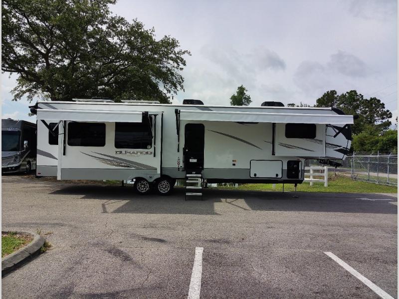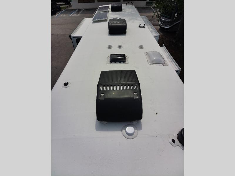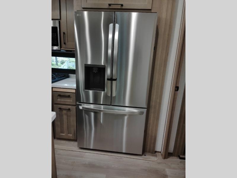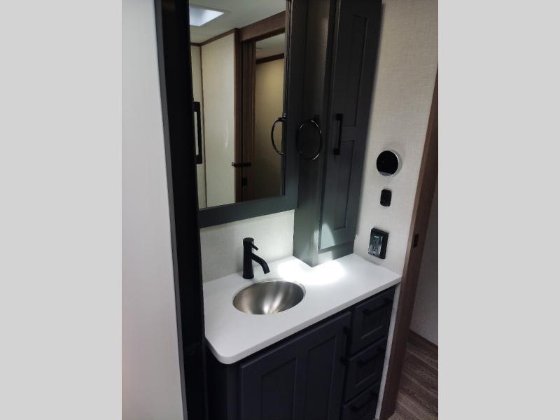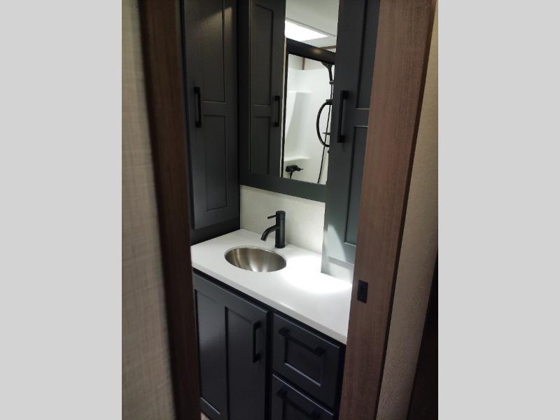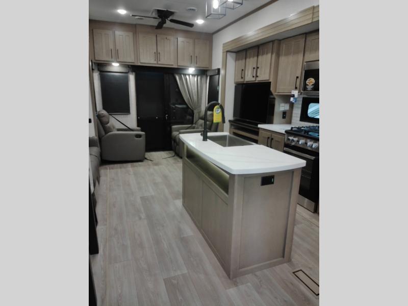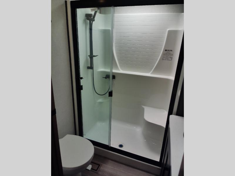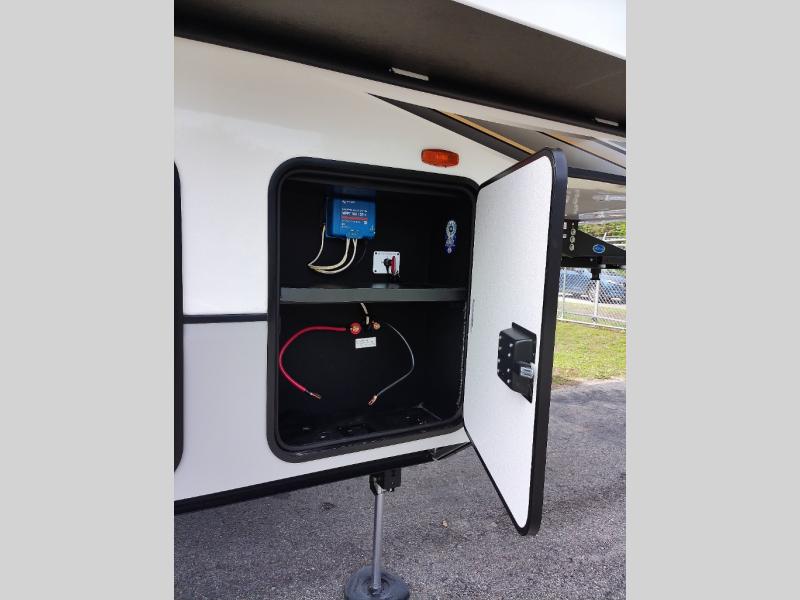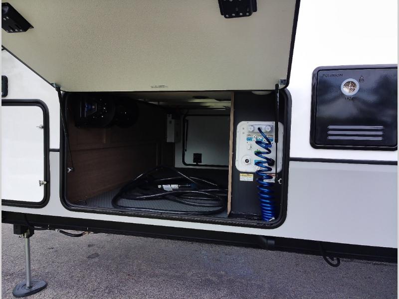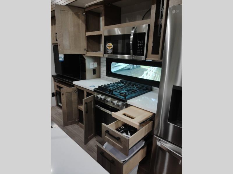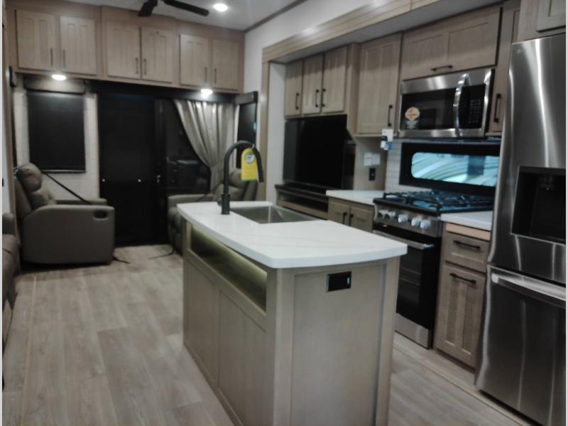 With any KZ Durango Gold full-time luxury fifth wheel, you will enjoy the new Blancher Cherry cabinetry, stainless steel appliances such as a 30" convection microwave and 24" oven with a four burner range, plus a stainless dishwasher. Other top features include an electric tilt bed with Serta Comfort foam king mattress, two 15K A/C units, plus theater seating with powered recline, heat and massage features. You will also appreciate a handy central vacuum system with attachments that stores out of sight. Each Durango Gold is constructed with six-sided aluminum framing, and has a heated, insulated and an enclosed underbelly. It is also constructed with Tufflex roofing material which is flexible, puncture resistant, and reflective. The now standard "Off The Grid" solar package includes two 200W solar panels, a 30A MPPT solar charge controller, and a 2,000W True Sine Wave inverter for off-grid capabilities. If you're wanting to go completely off-grid, you might want to choose the optional Boondocker Solar System with even more features that won't require you to be close to electric hookups!