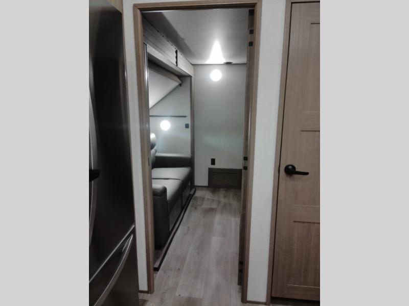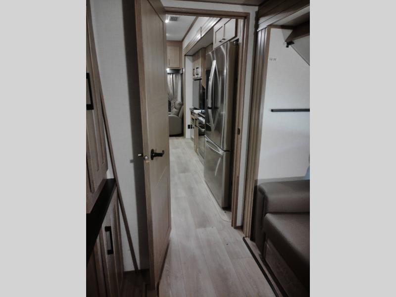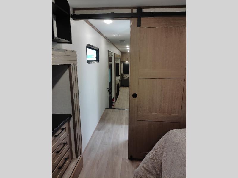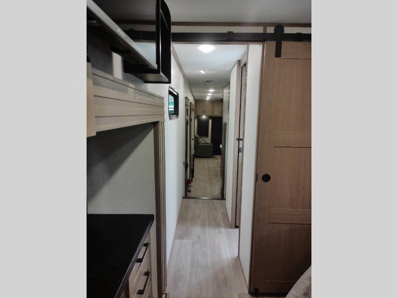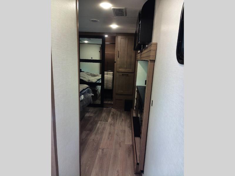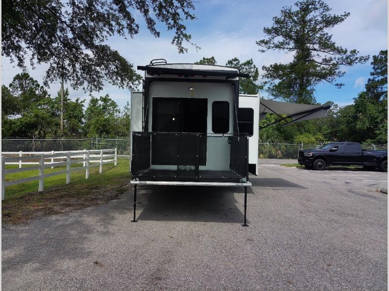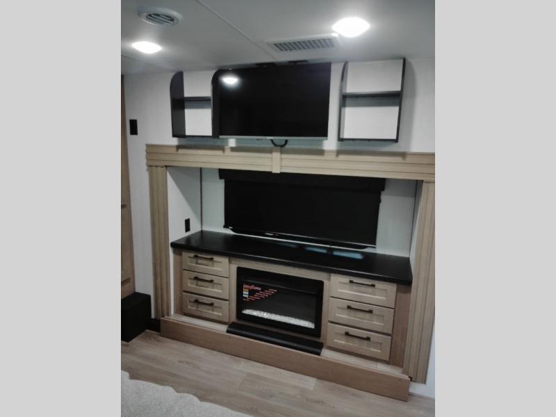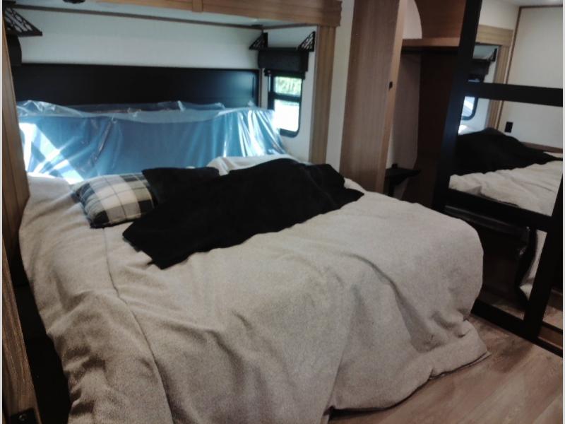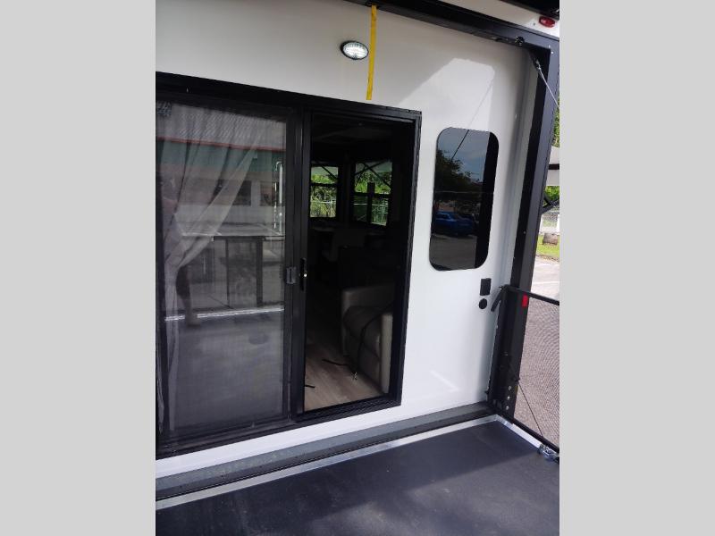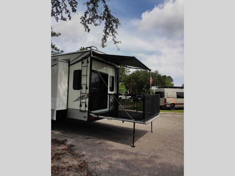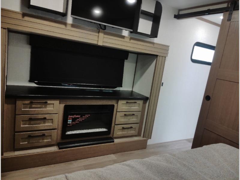 When you enjoy traveling with family and friends, this Durango Gold can provide everything you want, plus more! Beginning with the rear patio door that leads to the unique patio deck that provides a place to relax and unwind as well as stow a few items above ground. When you are ready to experience luxury and comfort head back inside to the fireplace below the 50" Smart LED TV and sit in the chairs or on the hide-a-bed sofa, or even at the dining table. There is a hide-a-bed sofa option to choose as well. The cook will have full amenities, upgraded appliances, a kitchen island with a farmhouse stainless steel sink, solid surface countertops, and a pantry to store lots of goodies. The middle extra room can be utilizes as a bunkhouse, another living area, or even an office because of the desk top, plus there is a queen size loft above. And you will be able to sleep like royalty in the front bedroom. There is plenty of storage for your clothing, as well as a 32" Smart LED TV, plus washer and dryer prep if you want the option to make laundry day easier!