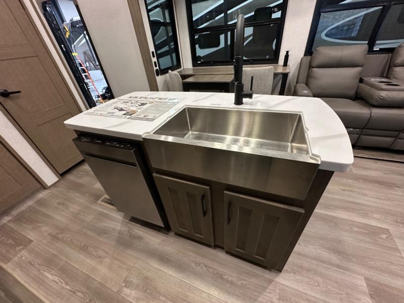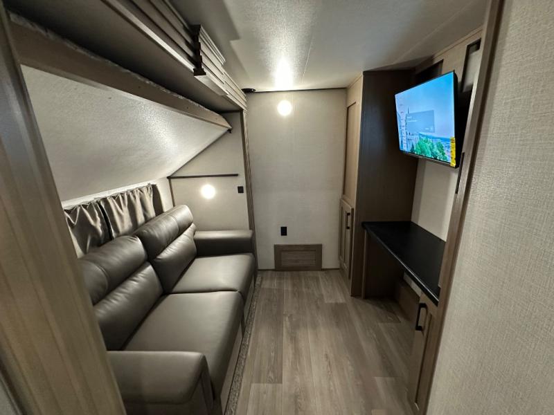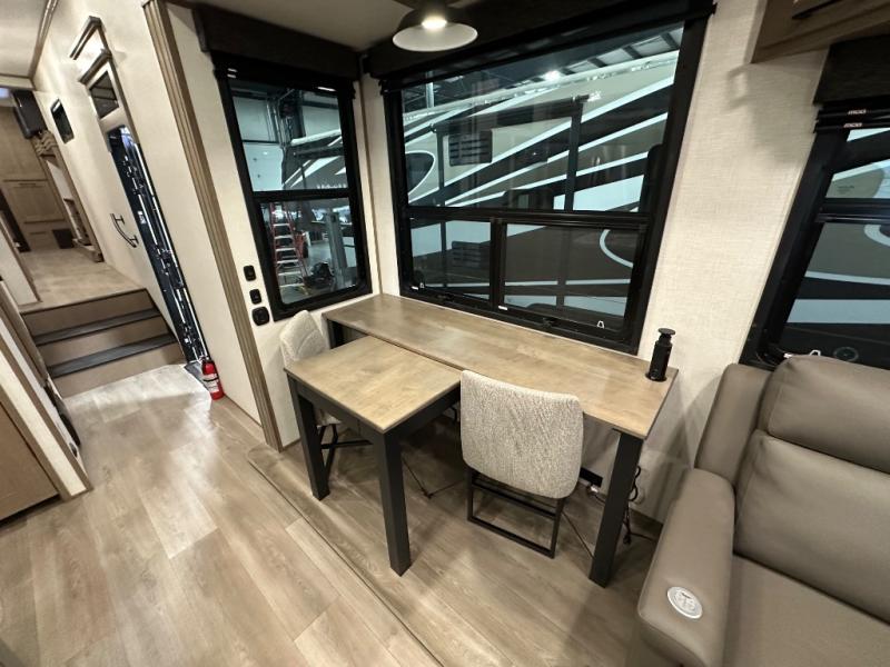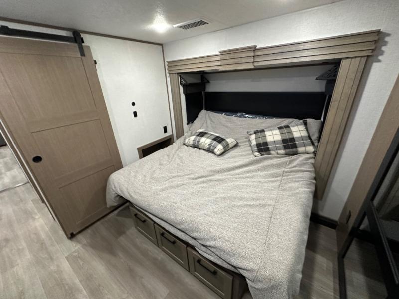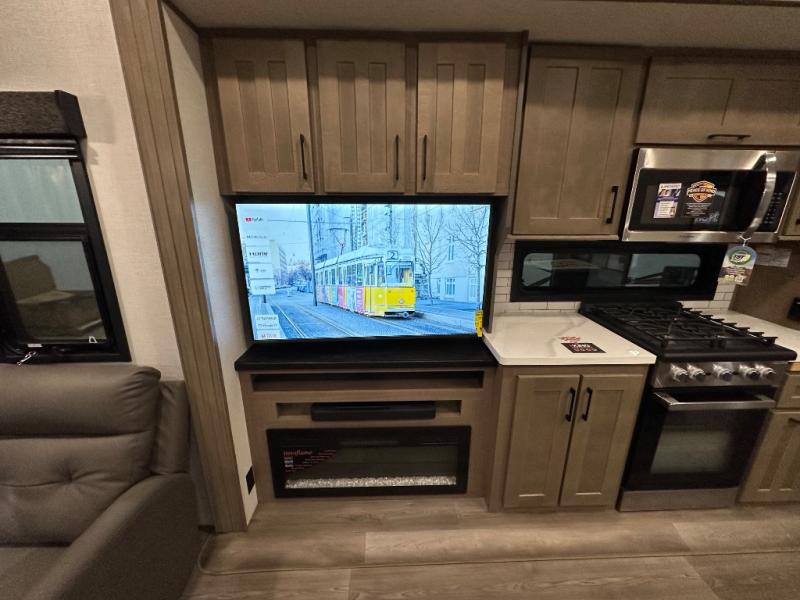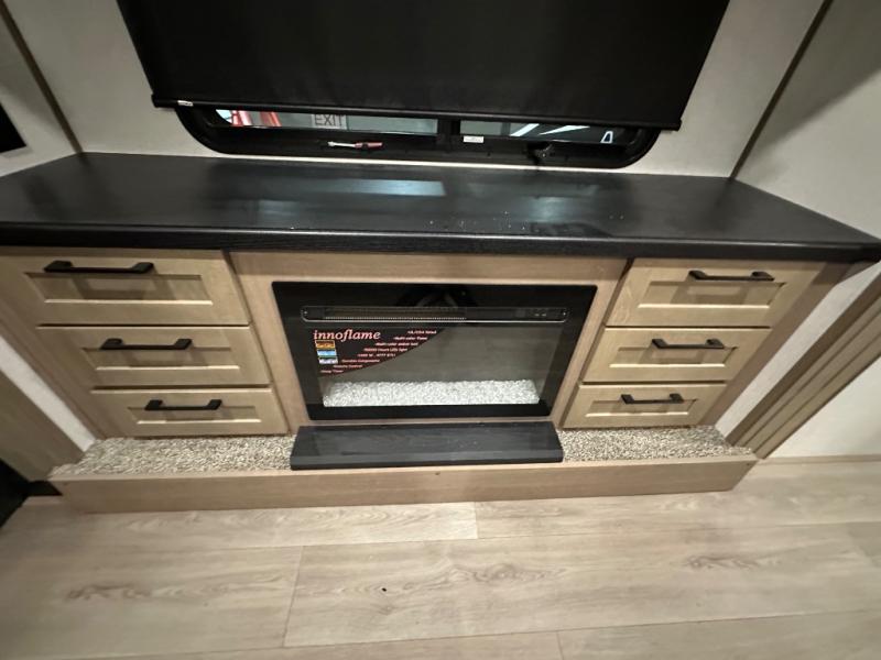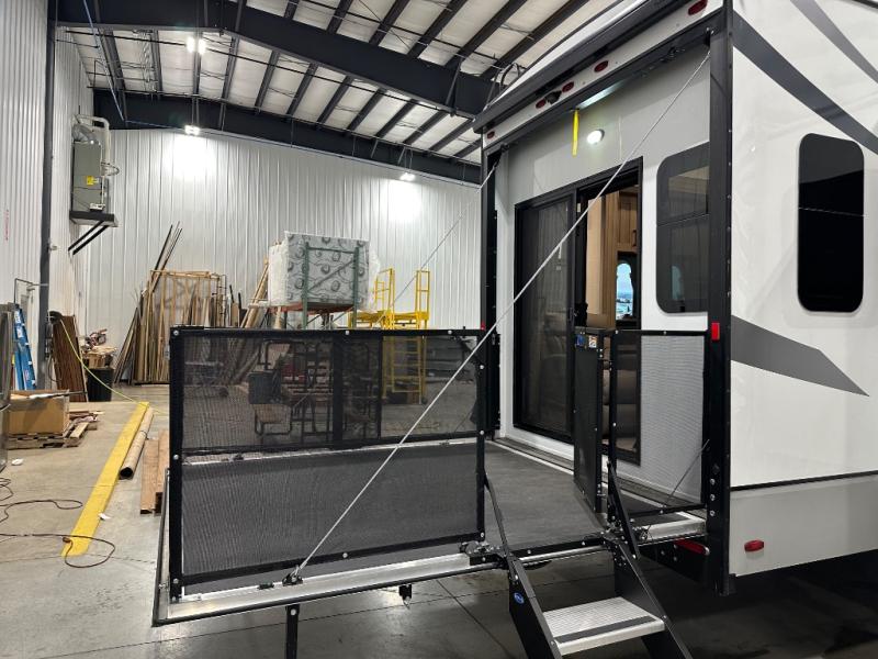 When you enjoy traveling with family and friends, this Durango Gold can provide everything you want, plus more! Beginning with the rear patio door that leads to the unique patio deck that provides a place to relax and unwind as well as stow a few items above ground. When you are ready to experience luxury and comfort head back inside to the fireplace below the 50" Smart LED TV and sit in the chairs or on the hide-a-bed sofa, or even at the dining table. There is a hide-a-bed sofa option to choose as well. The cook will have full amenities, upgraded appliances, a kitchen island with a farmhouse stainless steel sink, solid surface countertops, and a pantry to store lots of goodies. The middle extra room can be utilizes as a bunkhouse, another living area, or even an office because of the desk top, plus there is a queen size loft above. And you will be able to sleep like royalty in the front bedroom. There is plenty of storage for your clothing, as well as a 32" Smart LED TV, plus washer and dryer prep if you want the option to make laundry day easier!
