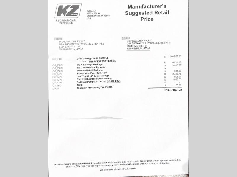 New 2025 KZ Durango Gold G388FLS Fifth Wheel