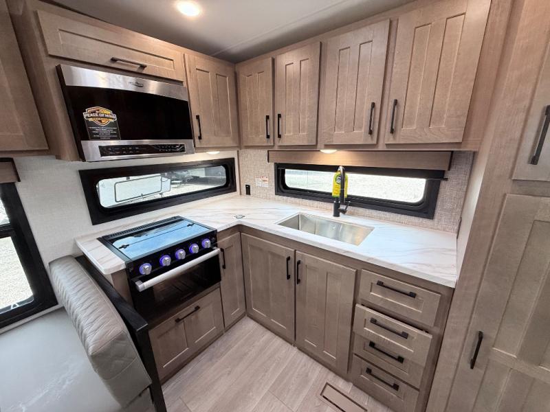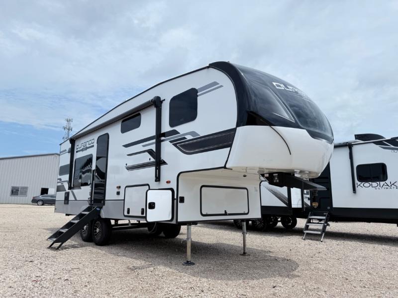 Each Durango Half-Ton fifth wheel by KZ provides lightweight towing with interior luxuries galore! Controlling the functions of your unit will be a breeze with the KZ Engage powered by OneControl that includes new integrated buttons & screen to control awnings, lights, tanks, and more. There are so many exterior conveniences to make each trip enjoyable, like the Dexter® axles with self adjusting brakes & height adjusting hangers metal latches on the baggage doors, heated water convenience center, and the flip-up main entry steps! Durable construction includes Tufflex PVC roofing, Pex® in-floor heated waterlines & kitchen gray pipes, and a reinforced heavy-duty fiberglass front cap. The interior will feel more like a residential home with new blancher cherry cabinets, seamless countertops, a spacious shower, a redesigned front bedroom, and smart storage spaces! You can also customize your fifth wheel to fit your needs with available options, such as, generator prep, wireless backup camera prep, a 32" exterior TV with bracket, and so much more!