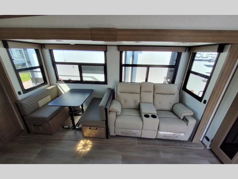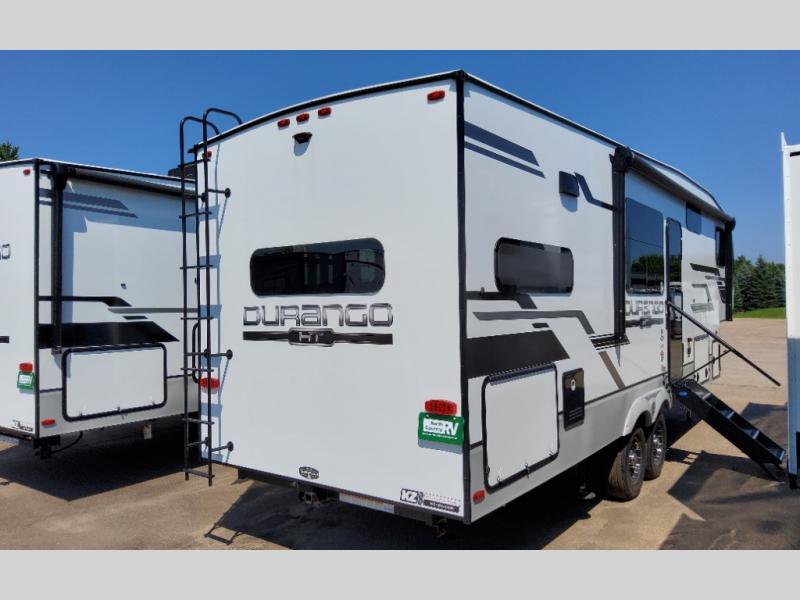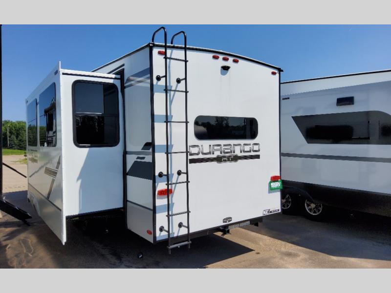 Each Durango Half-Ton fifth wheel by KZ provides lightweight towing with interior luxuries galore! Controlling the functions of your unit will be a breeze with the KZ Engage powered by OneControl that includes new integrated buttons & screen to control awnings, lights, tanks, and more. There are so many exterior conveniences to make each trip enjoyable, like the Dexter® axles with self adjusting brakes & height adjusting hangers metal latches on the baggage doors, heated water convenience center, and the flip-up main entry steps! Durable construction includes Tufflex PVC roofing, Pex® in-floor heated waterlines & kitchen gray pipes, and a reinforced heavy-duty fiberglass front cap. The interior will feel more like a residential home with new blancher cherry cabinets, seamless countertops, a spacious shower, a redesigned front bedroom, and smart storage spaces! You can also customize your fifth wheel to fit your needs with available options, such as, generator prep, wireless backup camera prep, a 32" exterior TV with bracket, and so much more!
