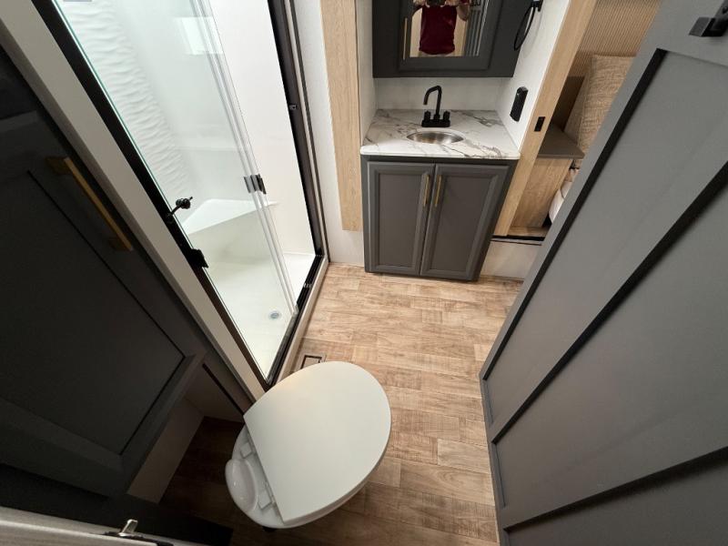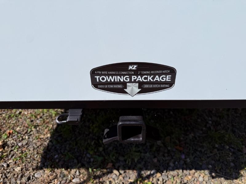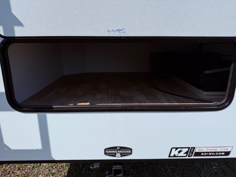 When you choose a Ridgeway fifth wheel by KZ you are choosing a modern design, convenient features, and comfort at every turn! These units have been constructed with some of the most durable materials in the industry, including Azdel composite panels and Tufflex roofing material. The exterior includes a full painted front cap, a fully-finished, heated and sealed basement storage compartment, and a deluxe heated water convenience center to easily monitor your units water levels. There is also 4-point auto electric leveling, Keyed-Alike for baggage and entry doors, a 2" towing receiver hitch, and many more stand-out exterior features. Once inside, you'll enjoy the ceiling crown molding, 5" gold cabinet hardware, deluxe residential-style furniture, and all-wood lumber core screwed cabinets with hardwood doors. The comforts continue on in the bathroom and bedroom with a shower skylight and built-in seat, large linen closets, a luxurious bedspread, and XL under-bed storage for luggage, extra blankets and more!