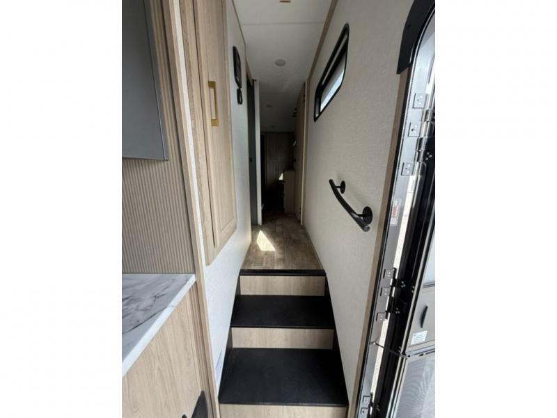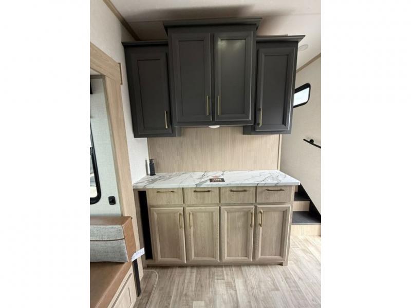 When you choose a Ridgeway fifth wheel by KZ you are choosing a modern design, convenient features, and comfort at every turn! These units have been constructed with some of the most durable materials in the industry, including Azdel composite panels and Tufflex roofing material. The exterior includes a full painted front cap, a fully-finished, heated and sealed basement storage compartment, and a deluxe heated water convenience center to easily monitor your units water levels. There is also 4-point auto electric leveling, Keyed-Alike for baggage and entry doors, a 2" towing receiver hitch, and many more stand-out exterior features. Once inside, you'll enjoy the ceiling crown molding, 5" gold cabinet hardware, deluxe residential-style furniture, and all-wood lumber core screwed cabinets with hardwood doors. The comforts continue on in the bathroom and bedroom with a shower skylight and built-in seat, large linen closets, a luxurious bedspread, and XL under-bed storage for luggage, extra blankets and more!