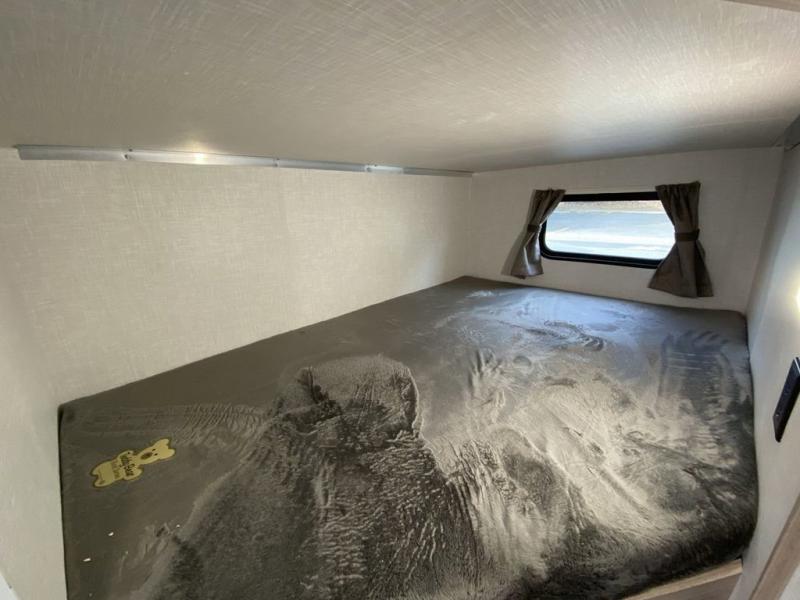 You can comfortably sleep eight people each night in this travel trailer, so invite your whole crew along! The little ones will love the double-size bunks, and the full bath is close by for convenience. You and your spouse can take the front private bedroom that includes a queen bed and dual shirt closets, and any other guests can sleep on the U-shaped dinette. Prepare a hearty breakfast on the three burner cooktop each morning, and the sink covers will provide you with more counter space to cut up fresh fruit! This model includes plenty of storage space, including an exterior trunk door plus a pass-through storage for fishing poles and tackle boxes!