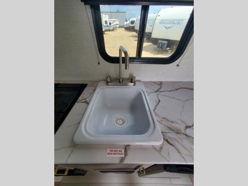 With any Sportsmen Classis travel trailer by KZ you will find durable construction materials, like the 3/8" fully-walkable roof and the one-piece seamless Tufflex material. Each model includes scissor-style stabilizer jacks, a Key-Alike program for baggage and entry doors, and a Leash Latch with a bonus beverage opener. You will find interior and exterior speakers plus backup camera prep and solar prep. The Sportsmen Classic is designed to make you feel at home with LED interior lights, rail-style cabinet doors, residential grade linoleum, and plenty of storage space for all your belongings.