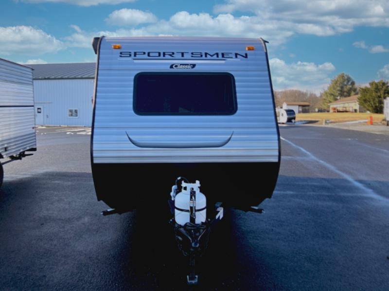 With any Sportsmen Classis travel trailer by KZ you will find durable construction materials, like the 3/8" fully-walkable roof and the one-piece seamless Tufflex material. Each model includes scissor-style stabilizer jacks, a Key-Alike program for baggage and entry doors, and a Leash Latch with a bonus beverage opener. You will find interior and exterior speakers plus backup camera prep and solar prep. The Sportsmen Classic is designed to make you feel at home with LED interior lights, rail-style cabinet doors, residential grade linoleum, and plenty of storage space for all your belongings.