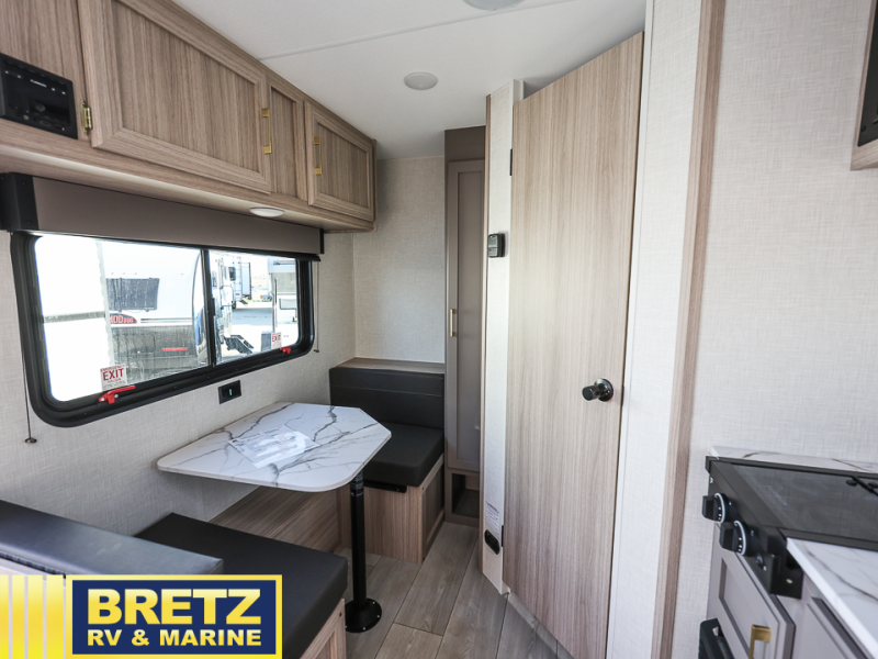 This cozy travel trailer with a front queen bed is sure to feel just like home. There is a private bath with a shower and toilet so won't have to use the camp's facilities, and a booth dinette provides dining and additional sleeping space for one adult or two small children. The two burner cooktop and microwave oven will let you make meals each day, and there is a refrigerator to keep perishables fresh. When you're ready for some fresh air, grab your hiking gear from the exterior trunk door and head for the trails!