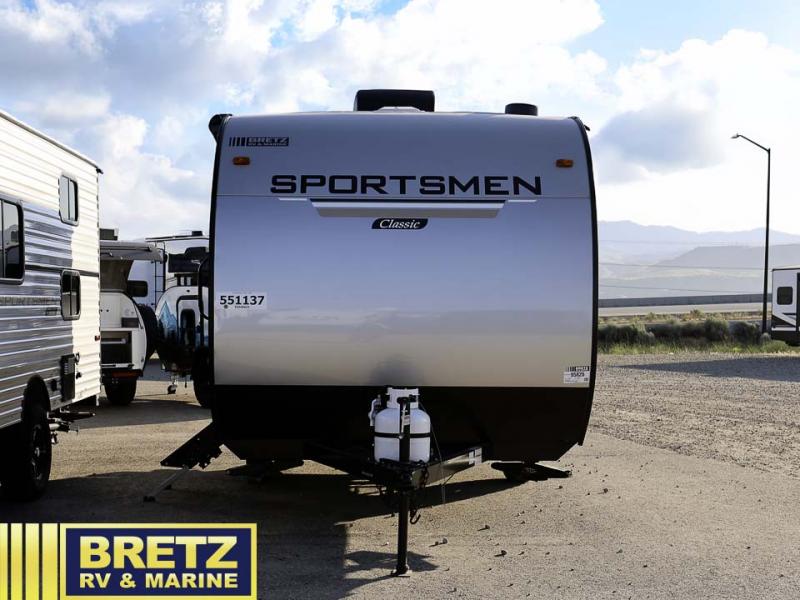 With any Sportsmen Classis travel trailer by KZ you will find durable construction materials, like the 3/8" fully-walkable roof and the one-piece seamless Tufflex material. Each model includes scissor-style stabilizer jacks, a Key-Alike program for baggage and entry doors, and a Leash Latch with a bonus beverage opener. You will find interior and exterior speakers plus backup camera prep and solar prep. The Sportsmen Classic is designed to make you feel at home with LED interior lights, rail-style cabinet doors, residential grade linoleum, and plenty of storage space for all your belongings.