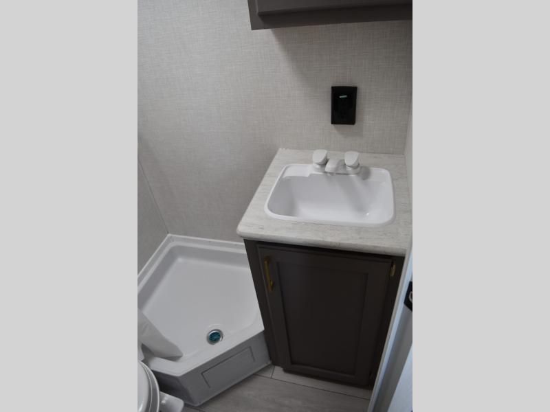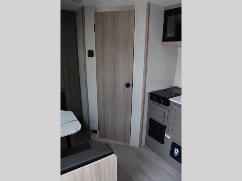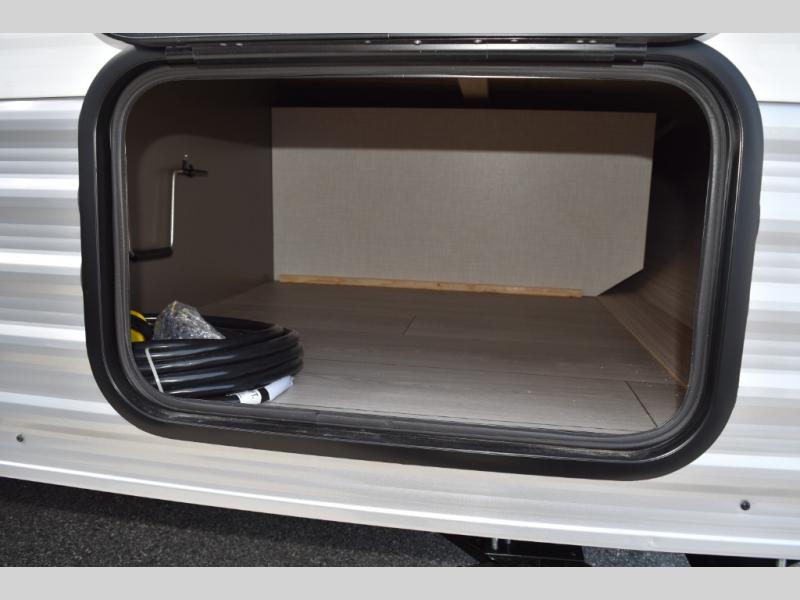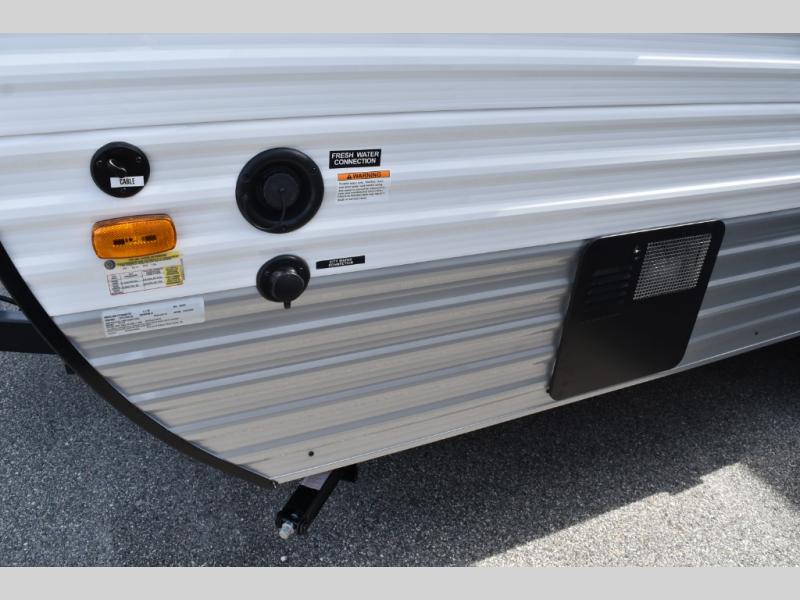 This cozy travel trailer with a front full bed is sure to feel just like home. There is a private bath with a shower and toilet so won't have to use the camp's facilities, and a booth dinette provides dining and additional sleeping space for one adult or two small children. The two burner cooktop and microwave oven will let you make meals each day, and there is a refrigerator to keep perishables fresh. When you're ready for some fresh air, grab your hiking gear from the exterior trunk door and head for the trails!