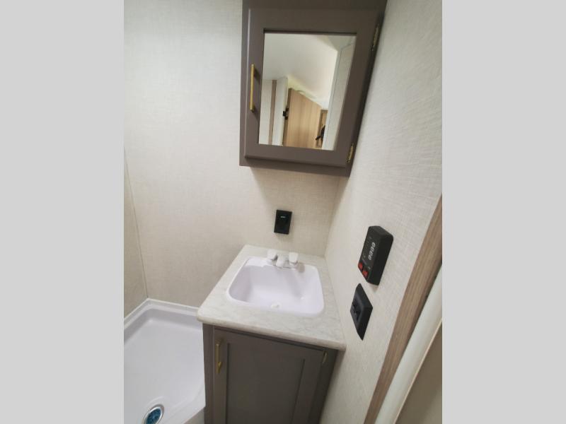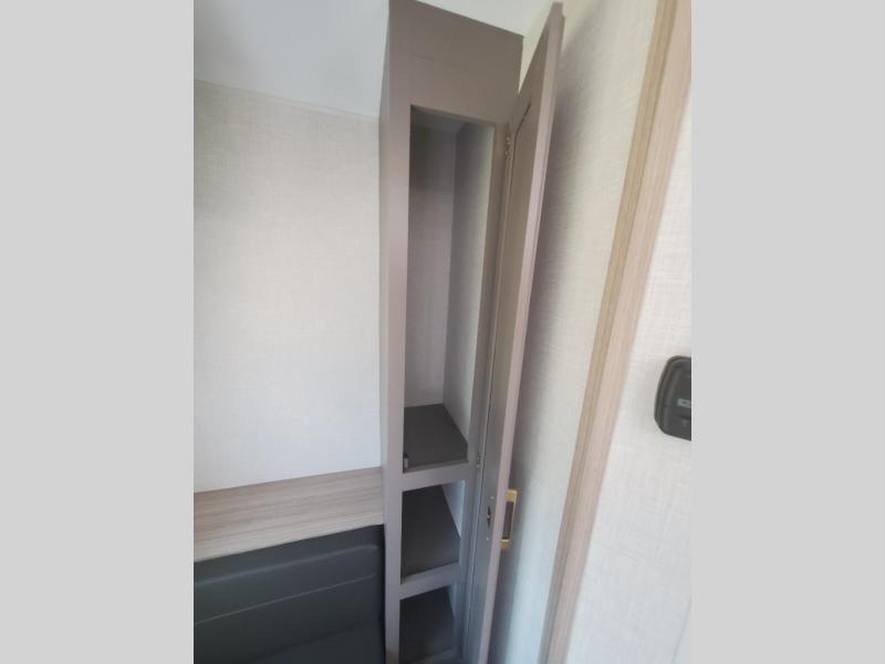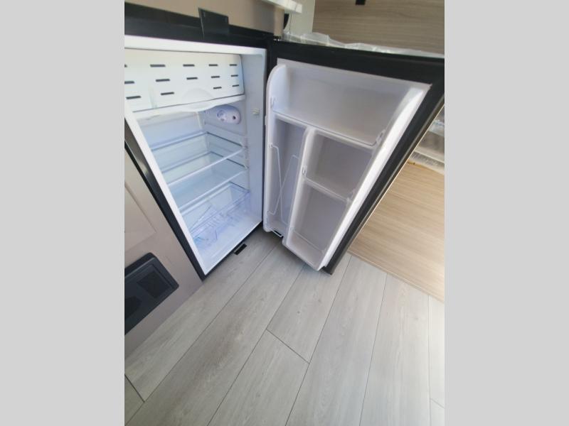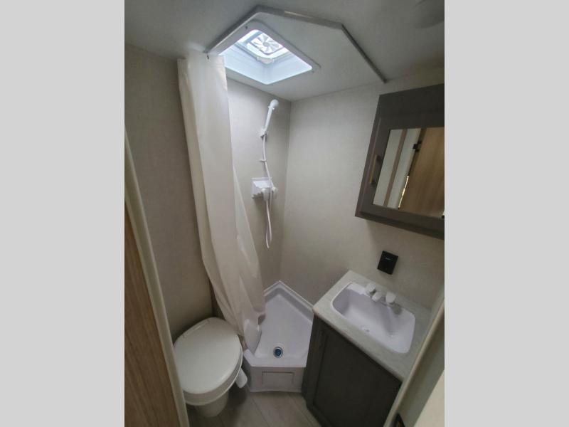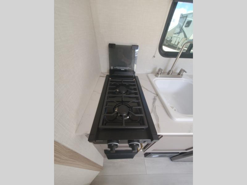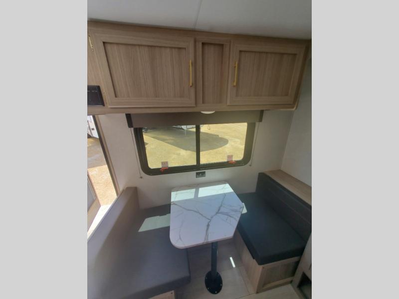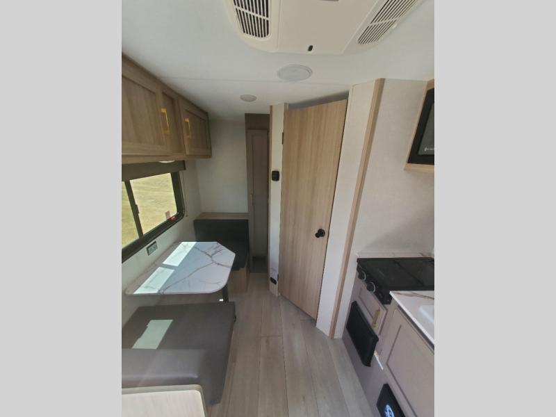 This cozy travel trailer with a front full bed is sure to feel just like home. There is a private bath with a shower and toilet so won't have to use the camp's facilities, and a booth dinette provides dining and additional sleeping space for one adult or two small children. The two burner cooktop and microwave oven will let you make meals each day, and there is a refrigerator to keep perishables fresh. When you're ready for some fresh air, grab your hiking gear from the exterior trunk door and head for the trails!