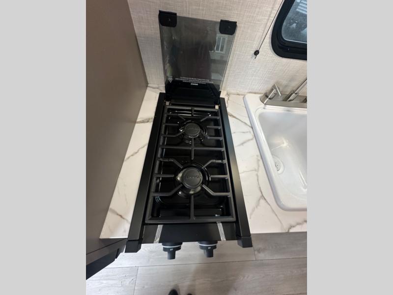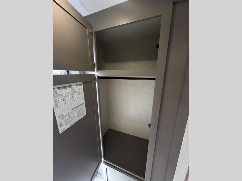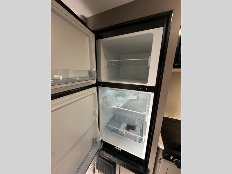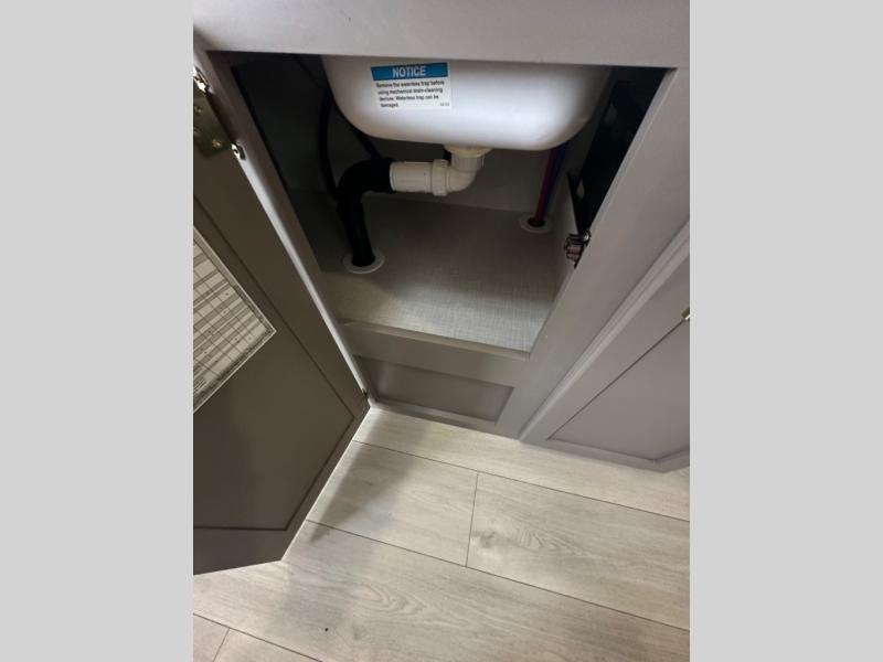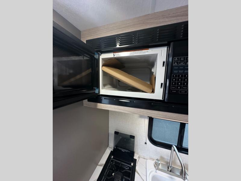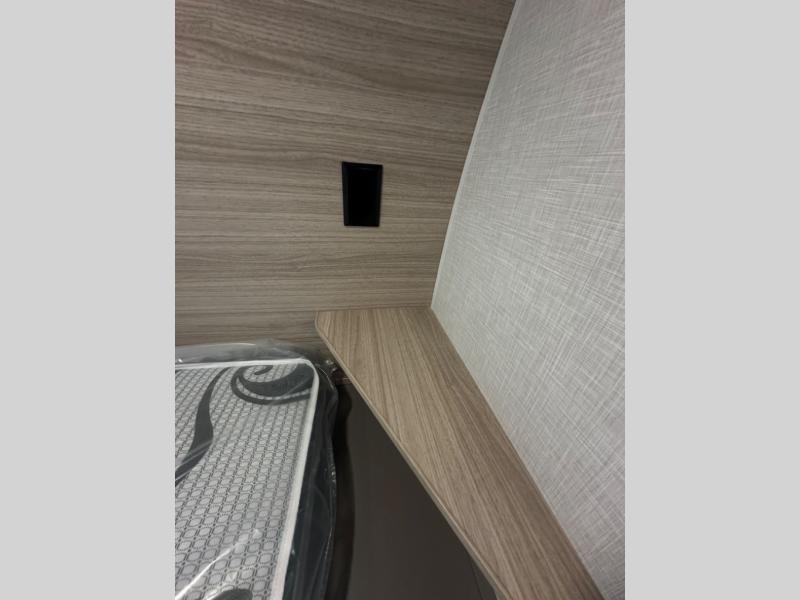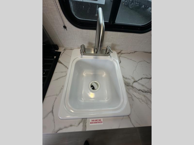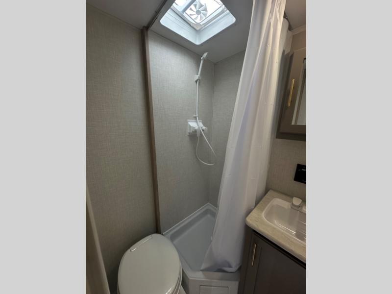 This travel trailer will feel just like home with its full bath, walk-around queen bed, and plenty of storage space for your belongings. Once you arrive at the campground, grab your fishing poles from the pass-through storage and head down to the river. You can get cleaned up in the full bath before heading to the kitchen to prepare a meal on the two burner cooktop with a glass cover or in the microwave oven. There is a comfortable booth dinette to dine at, and this space can double as sleeping space for overnight guests or two little ones.