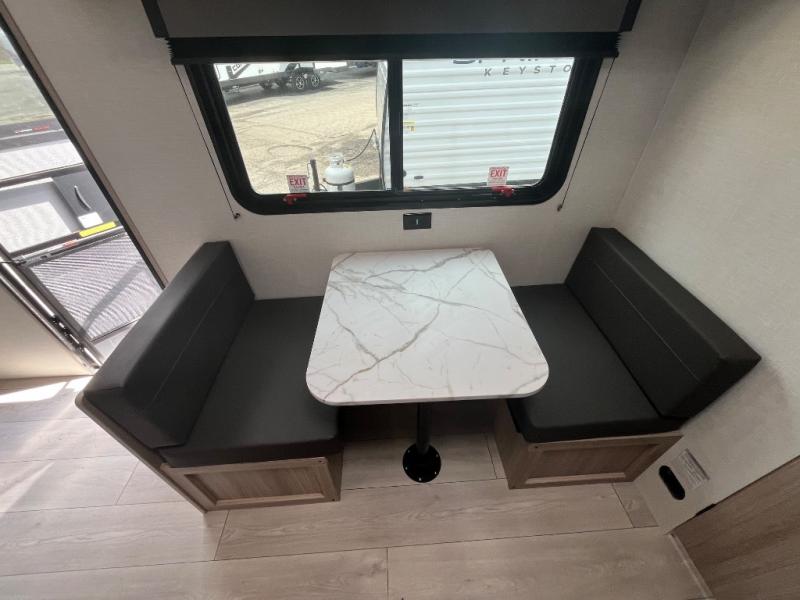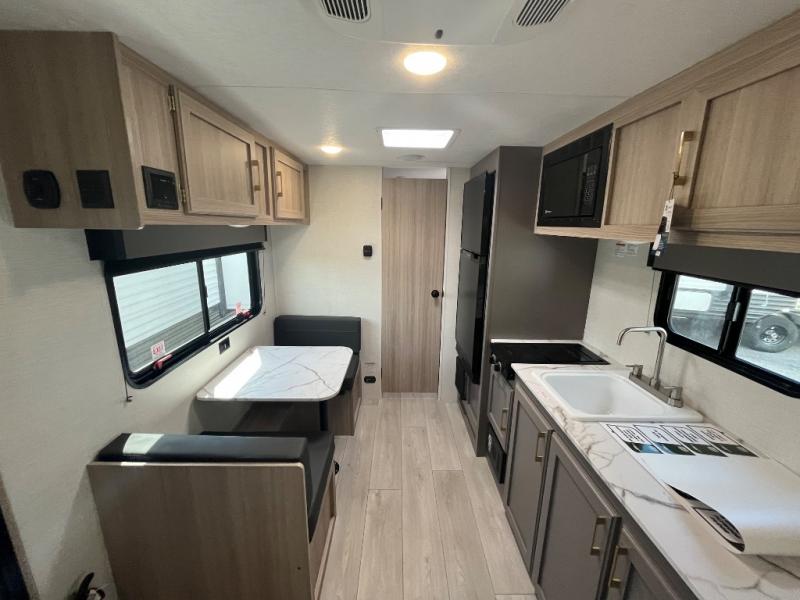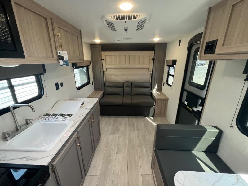 This versatile RV is perfect for weekend trips to the lake. You can enjoy relaxing on the front sofa during the day, and at night you can fold down the queen Murphy bed for comfortable sleeping space. This model also includes a booth dinette that can be used for dining and sleeping space. The chef of your group can prepare meals on the two burner cooktop with a glass cover, and leftovers can go in the 8 cu. ft. 12V refrigerator. This model also includes a 12' power awning that will provide shade while you're outdoors as well.