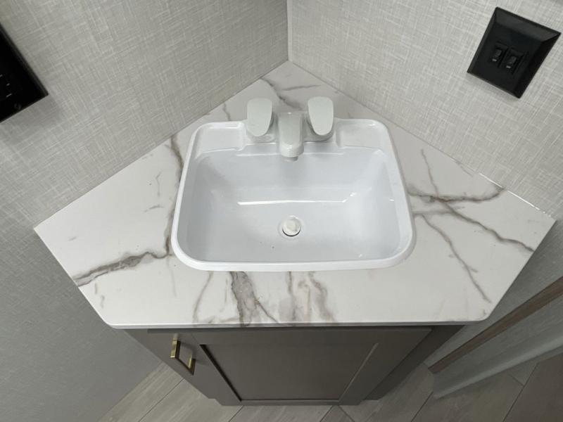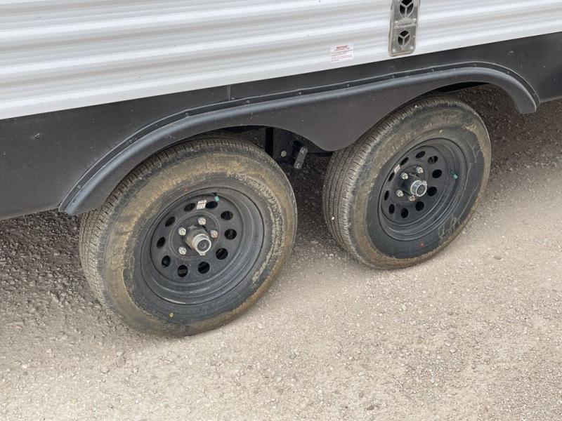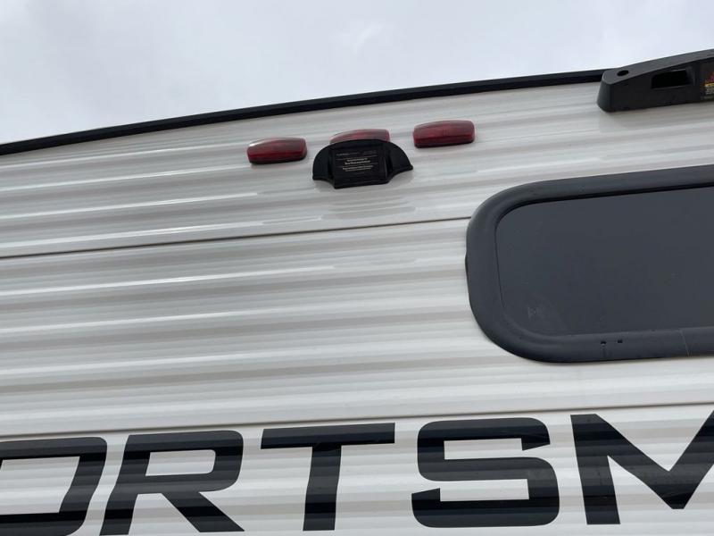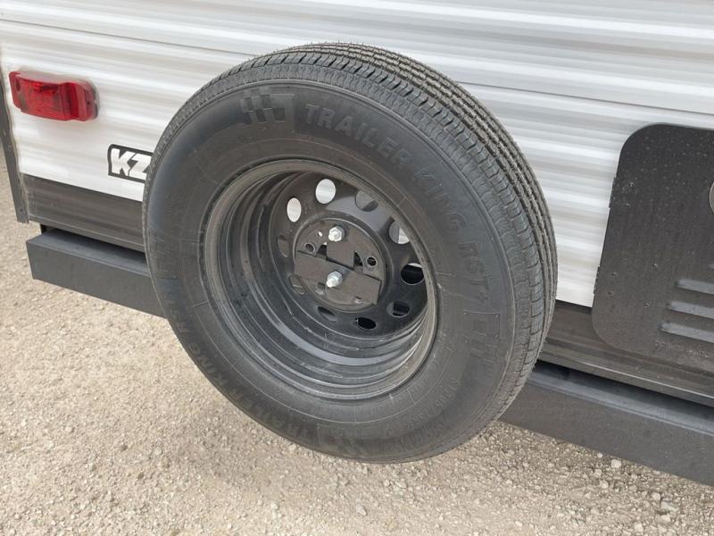 Each Sportsmen SE travel trailer and toy hauler by KZ is constructed with KZ exclusive tough shield exterior metal, a one-piece seamless walk-on Tufflex roofing material, and diamond plate rock guard to protect your unit from road debris. You will appreciate the extra large baggage doors for stowing away your gear when not in use, and tinted windows to help keep the harmful sun rays out plus keeping it cooler inside. Some of the exterior conveniences found in the mandatory Advantage Package are the solid folding steps with a large folding grab handle for easy entry and exit, a full glass friction hinged entry door, plus an exterior shower for your pets or to rinse off before you head inside. You'll also appreciate the nitrogen-filled tires, solar and backup camera prep, plus a Leash Latch with a bonus beverage opener. You'll feel right at home inside with linoleum flooring throughout, a 13,500 BTU air conditioner, large overhead cabinets, a shower surround, and much more!