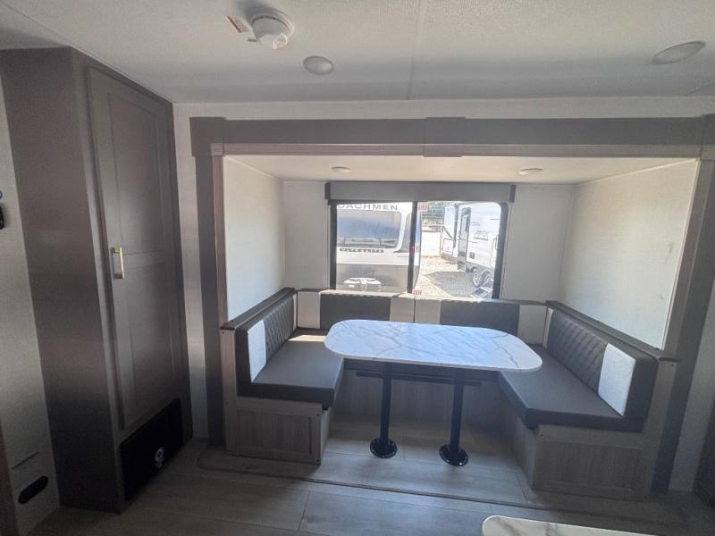 You can comfortably sleep eight people each night in this travel trailer, so invite your whole crew along! The little ones will love the double-size bunks, and the full bath is close by for convenience. You and your spouse can take the front private bedroom that includes a queen bed and dual shirt closets, and any other guests can sleep on the U-shaped dinette. Prepare a hearty breakfast on the three burner cooktop each morning, and the sink covers will provide you with more counter space to cut up fresh fruit! This model includes plenty of storage space, including an exterior trunk door plus a pass-through storage for fishing poles and tackle boxes!