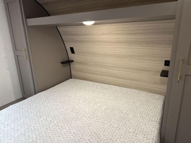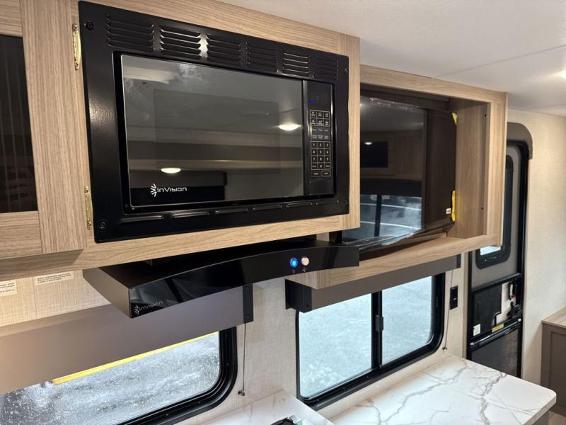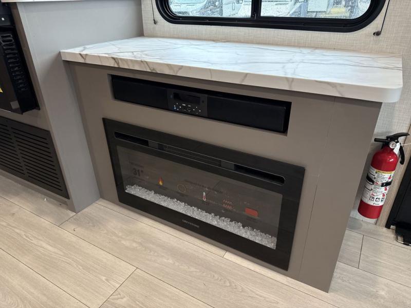 This model features dual entry doors which will make camping easier than ever! You can enter in through the front private bedroom, or the rear living area. The walk-through bath is easily accessible to everyone, and the large slide included in this model will provide the dog space to stretch out. Your crew can play a game around the U-shaped dinette after dinner, or head outdoors to relax under the 20' power awning. You'll also find a 70" sofa in the rear living area that will be perfect for overnight guests. Don't let this model slip away!