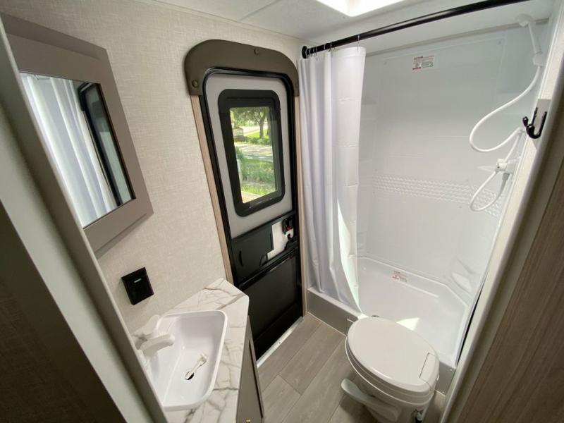 Each Sportsmen SE travel trailer and toy hauler by KZ is constructed with KZ exclusive tough shield exterior metal, a one-piece seamless walk-on Tufflex roofing material, and diamond plate rock guard to protect your unit from road debris. You will appreciate the extra large baggage doors for stowing away your gear when not in use, and tinted windows to help keep the harmful sun rays out plus keeping it cooler inside. Some of the exterior conveniences found in the mandatory Advantage Package are the solid folding steps with a large folding grab handle for easy entry and exit, a full glass friction hinged entry door, plus an exterior shower for your pets or to rinse off before you head inside. You'll also appreciate the nitrogen-filled tires, solar and backup camera prep, plus a Leash Latch with a bonus beverage opener. You'll feel right at home inside with linoleum flooring throughout, a 13,500 BTU air conditioner, large overhead cabinets, a shower surround, and much more!