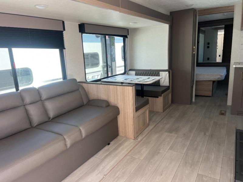 Let this travel trailer wow you with its interior comforts and exterior conveniences! There is ample space inside to move about thanks to the double slides; a large slide in the living room and a queen bed slide in the front bedroom! Your crew can relax on the 70" jackknife sofa across from the fireplace and LED TV, or play a game at the booth dinette. You will appreciate having a walk-in pantry with coat hooks right as you enter the unit, and there is more storage space found throughout. The full rear bath features a 30" x 40" shower, a linen closet, plus dual bath sinks so you both can get ready for bed at the same time! This model also includes an outside kitchen with a griddle and refrigerator plus a full interior kitchen as well!
