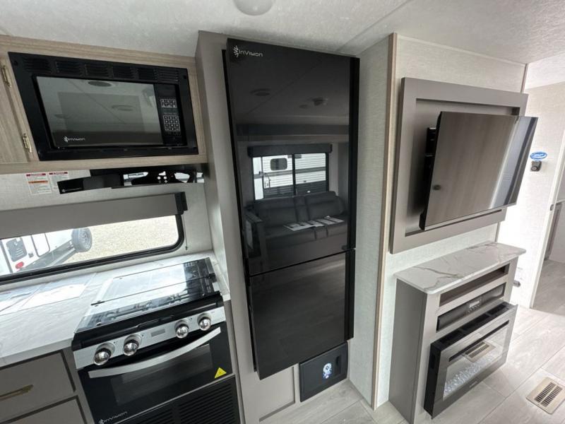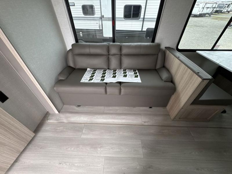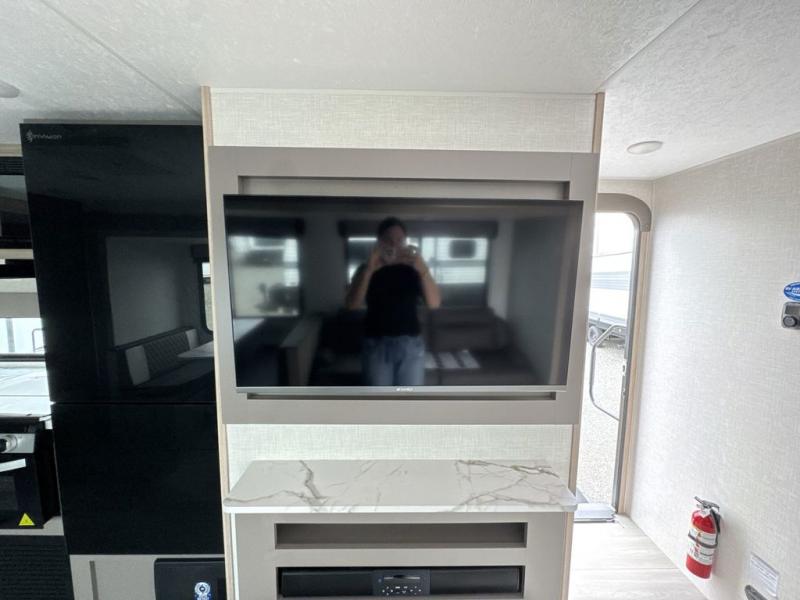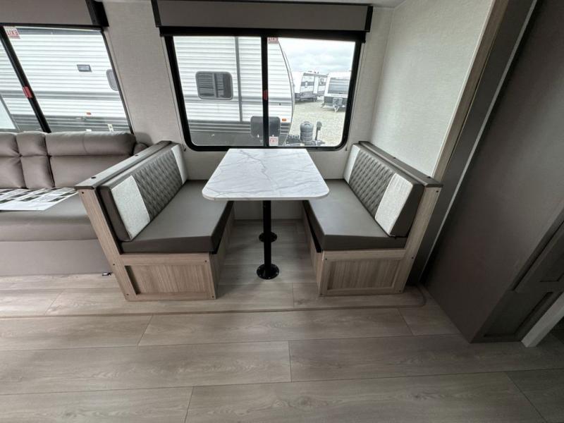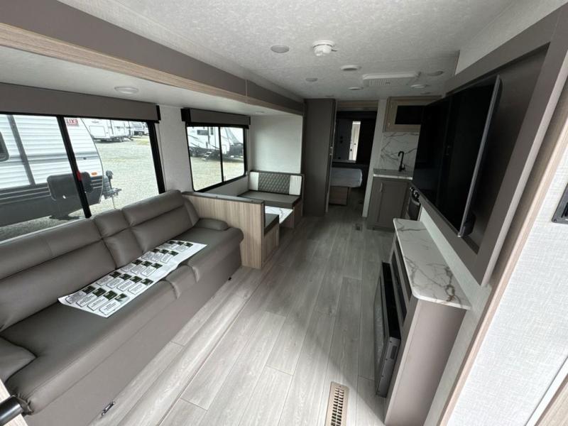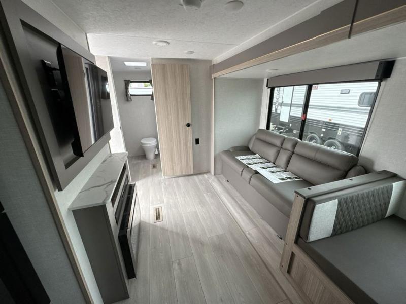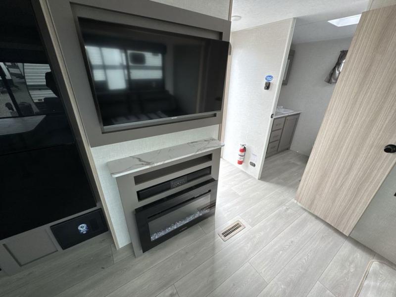 Let this travel trailer wow you with its interior comforts and exterior conveniences! There is ample space inside to move about thanks to the double slides; a large slide in the living room and a queen bed slide in the front bedroom! Your crew can relax on the 70" jackknife sofa across from the fireplace and LED TV, or play a game at the booth dinette. You will appreciate having a walk-in pantry with coat hooks right as you enter the unit, and there is more storage space found throughout. The full rear bath features a 30" x 40" shower, a linen closet, plus dual bath sinks so you both can get ready for bed at the same time! This model also includes an outside kitchen with a griddle and refrigerator plus a full interior kitchen as well!