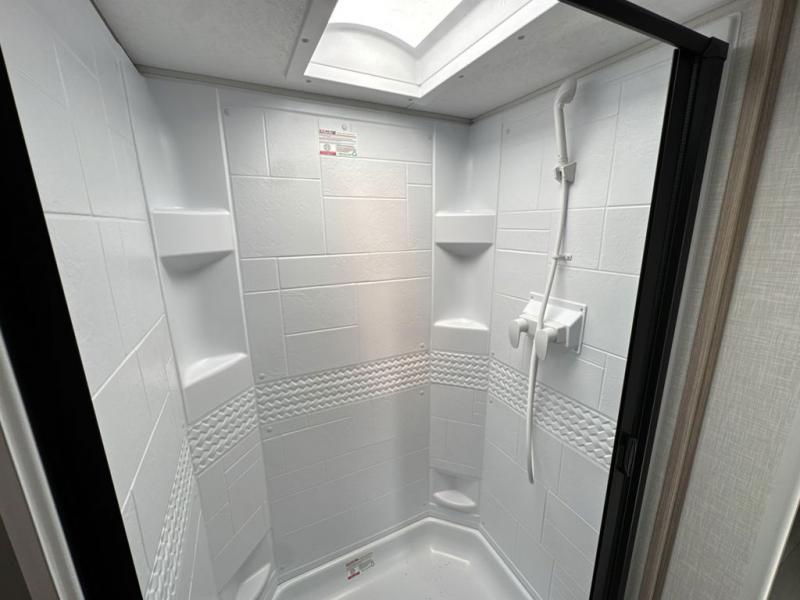 Each Sportsmen SE travel trailer and toy hauler by KZ is constructed with KZ exclusive tough shield exterior metal, a one-piece seamless walk-on Tufflex roofing material, and diamond plate rock guard to protect your unit from road debris. You will appreciate the extra large baggage doors for stowing away your gear when not in use, and tinted windows to help keep the harmful sun rays out plus keeping it cooler inside. Some of the exterior conveniences found in the mandatory Advantage Package are the solid folding steps with a large folding grab handle for easy entry and exit, a full glass friction hinged entry door, plus an exterior shower for your pets or to rinse off before you head inside. You'll also appreciate the nitrogen-filled tires, solar and backup camera prep, plus a Leash Latch with a bonus beverage opener. You'll feel right at home inside with linoleum flooring throughout, a 13,500 BTU air conditioner, large overhead cabinets, a shower surround, and much more!