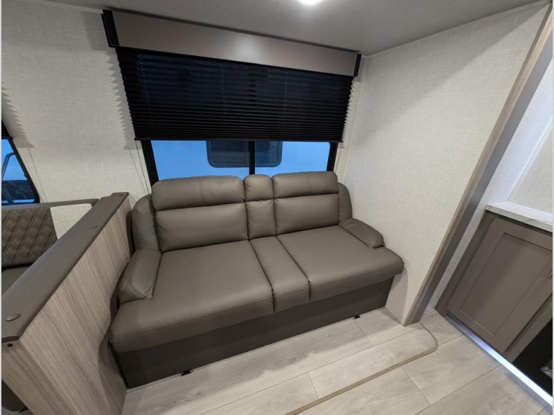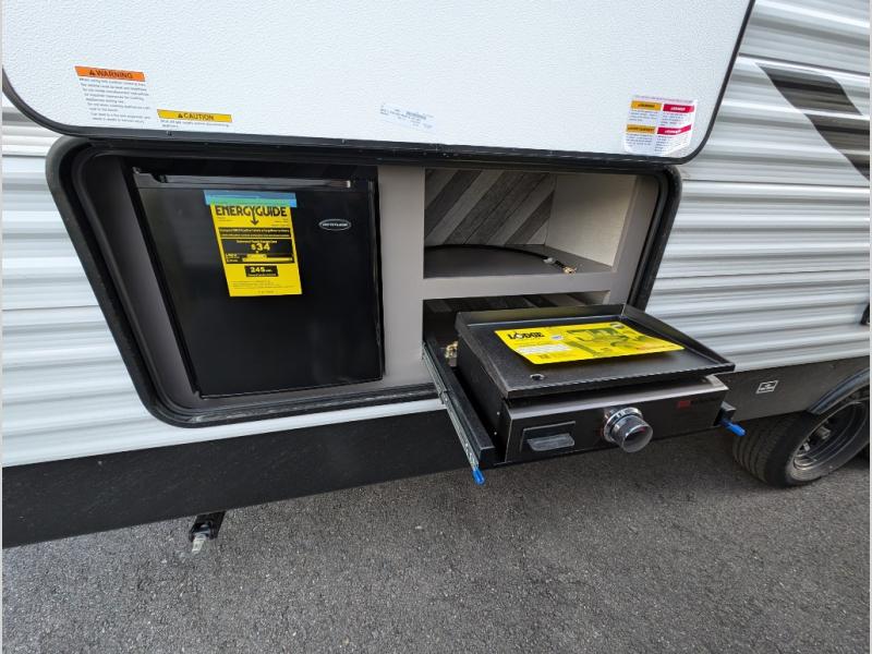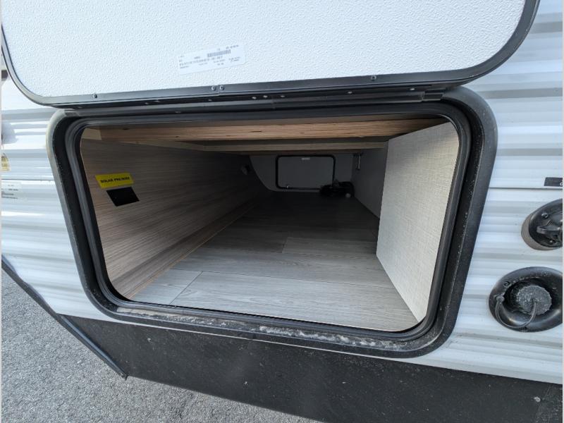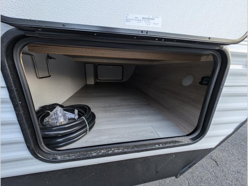 Each Sportsmen SE travel trailer and toy hauler by KZ is constructed with KZ exclusive tough shield exterior metal, a one-piece seamless walk-on Tufflex roofing material, and diamond plate rock guard to protect your unit from road debris. You will appreciate the extra large baggage doors for stowing away your gear when not in use, and tinted windows to help keep the harmful sun rays out plus keeping it cooler inside. Some of the exterior conveniences found in the mandatory Advantage Package are the solid folding steps with a large folding grab handle for easy entry and exit, a full glass friction hinged entry door, plus an exterior shower for your pets or to rinse off before you head inside. You'll also appreciate the nitrogen-filled tires, solar and backup camera prep, plus a Leash Latch with a bonus beverage opener. You'll feel right at home inside with linoleum flooring throughout, a 13,500 BTU air conditioner, large overhead cabinets, a shower surround, and much more!