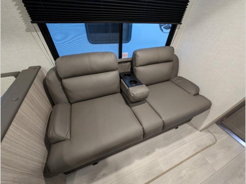 Escape to the lake in this spacious RV that can sleep nine to ten people each night! There is a private bunkhouse with four bunks, a front bedroom with a queen bed, plus a U-shaped dinette and a sofa that can sleep everyone. The chef of your group will love the outdoor kitchen with its griddle and refrigerator, and there is a 16' power awning where everyone can visit under while they're waiting for lunch. This model also includes plenty of storage, including a pass-through compartment and an exterior storage door for tackle boxes or tools!